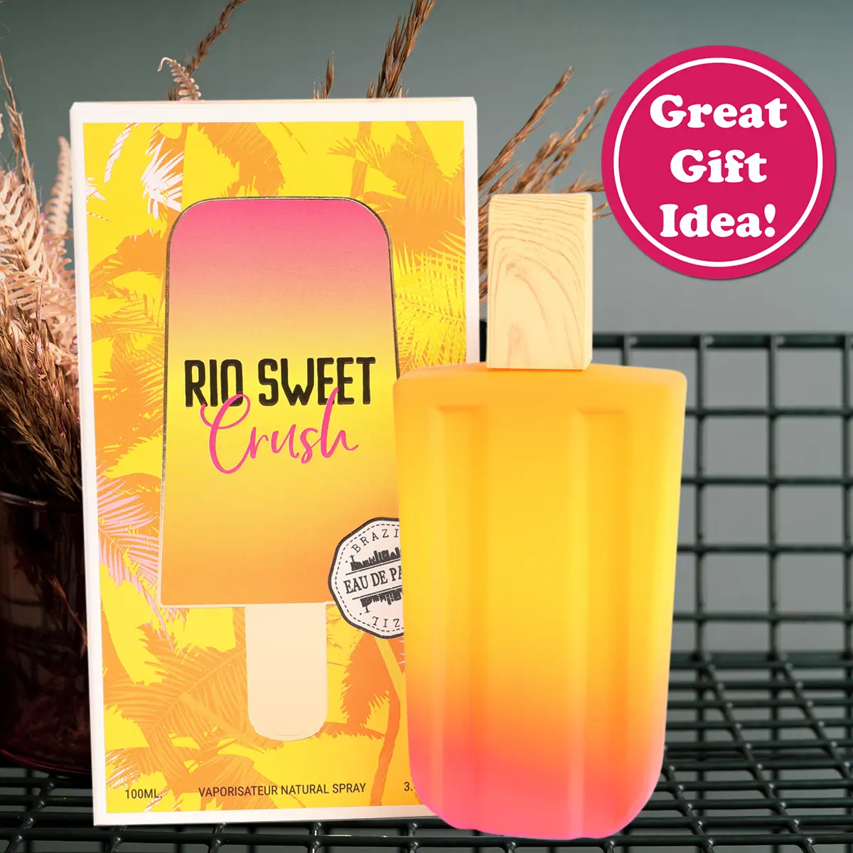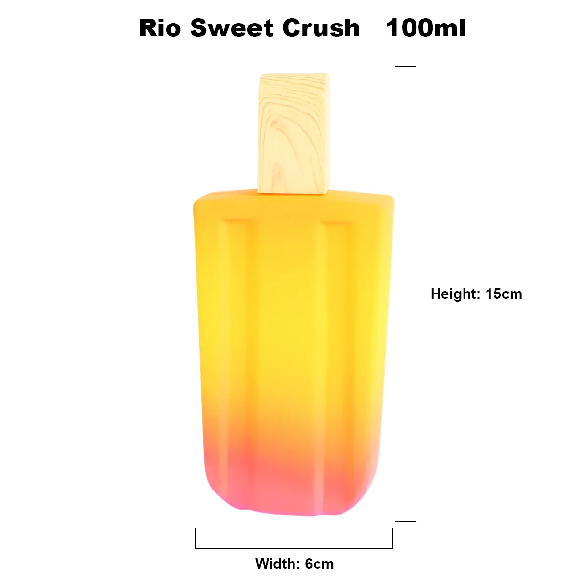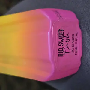 Rio Sweet crush perfume was my second in my collection . It arrived in a beautiful ombré orange and hot pink summer popsicle aesthetic semi hefty bottle . After spraying it there was a tropical fruity fragrance, then sweet, and it dried down it had a floral scent.