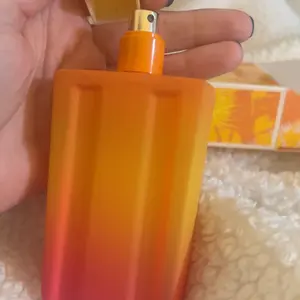 Such an amazing perfume I love the packaging and scent it smells very tropical with hints of vanilla the scent lasts a while the bottle will last you a while and it’s glass I love it would definitely recommend 😌🥰🤩