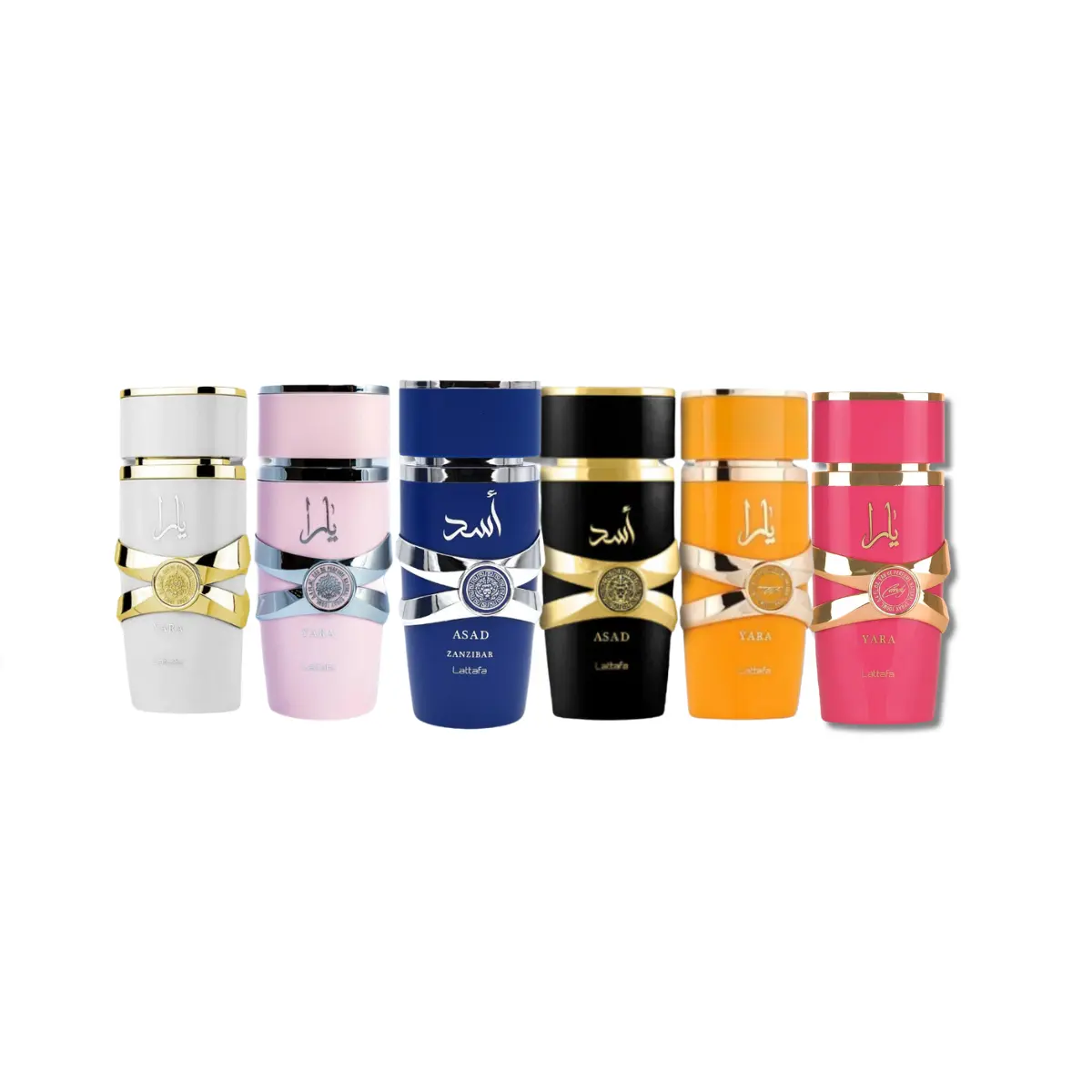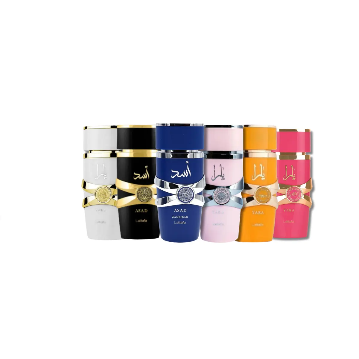 LATTAFA MEGA COMBO YARA SET YARA,YARA CANDY, ASAD, ZANZIBAR, MOI & TOUS EAU DE PARFUM 3.4FL.OZ
