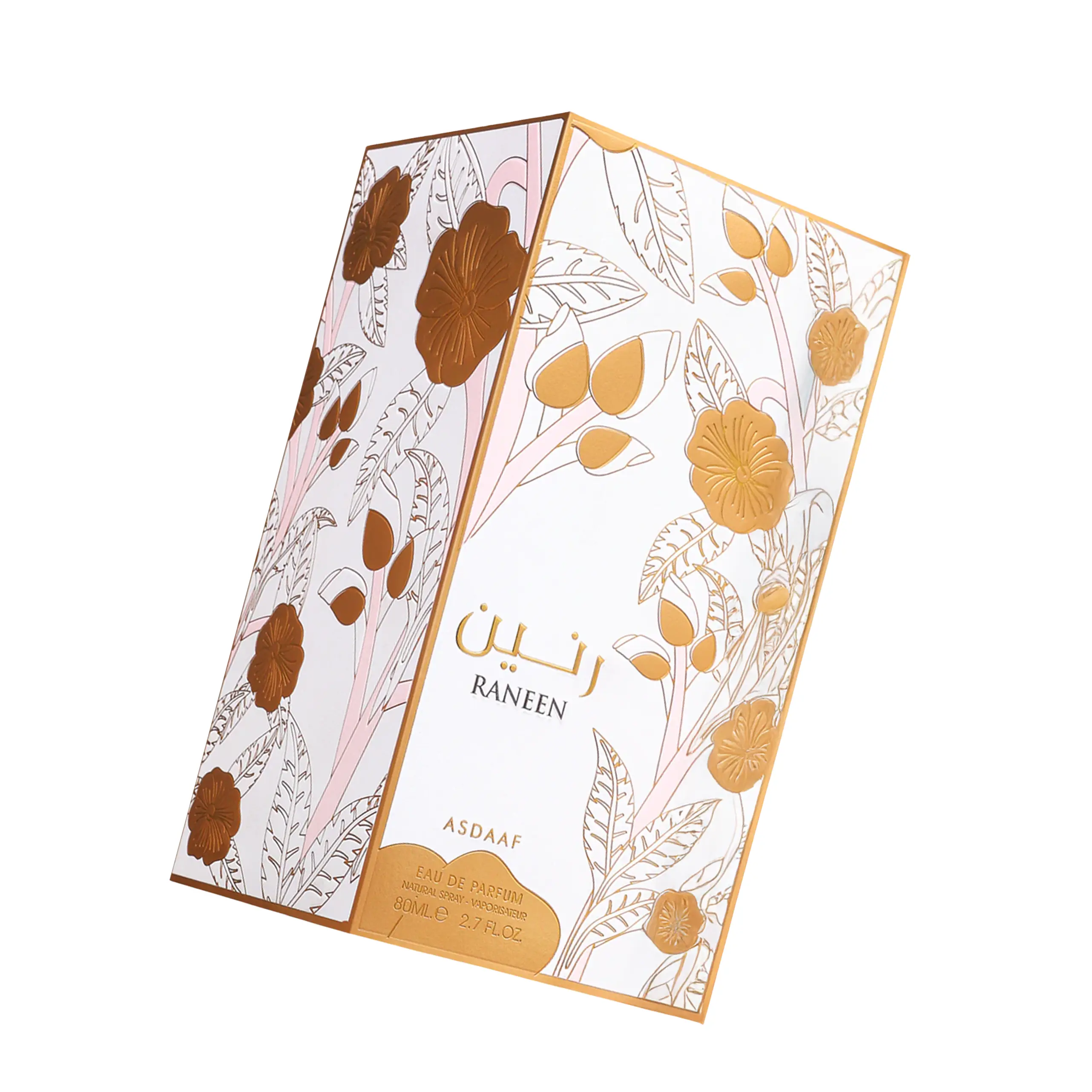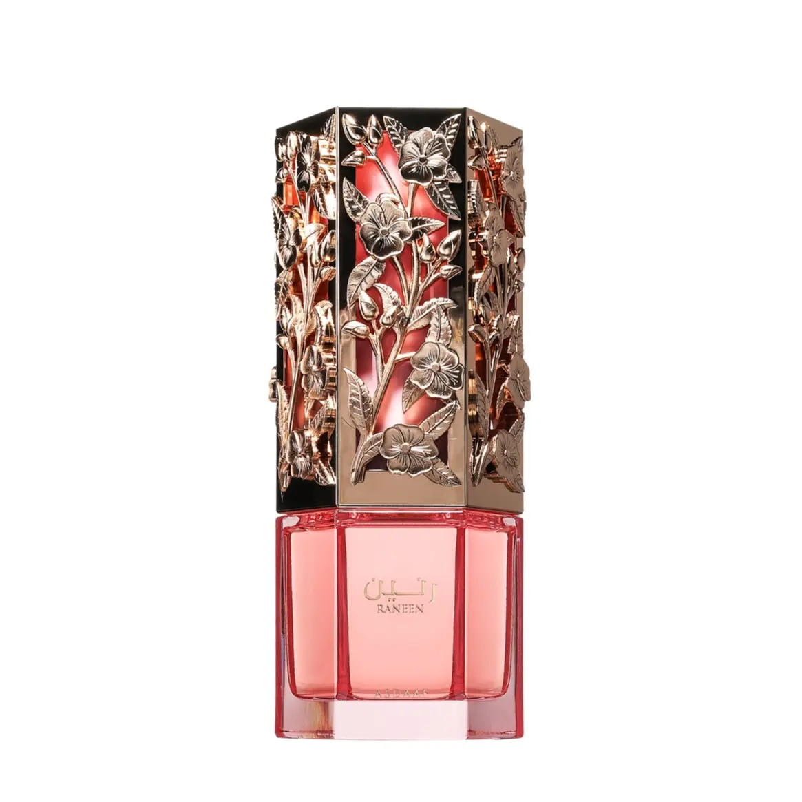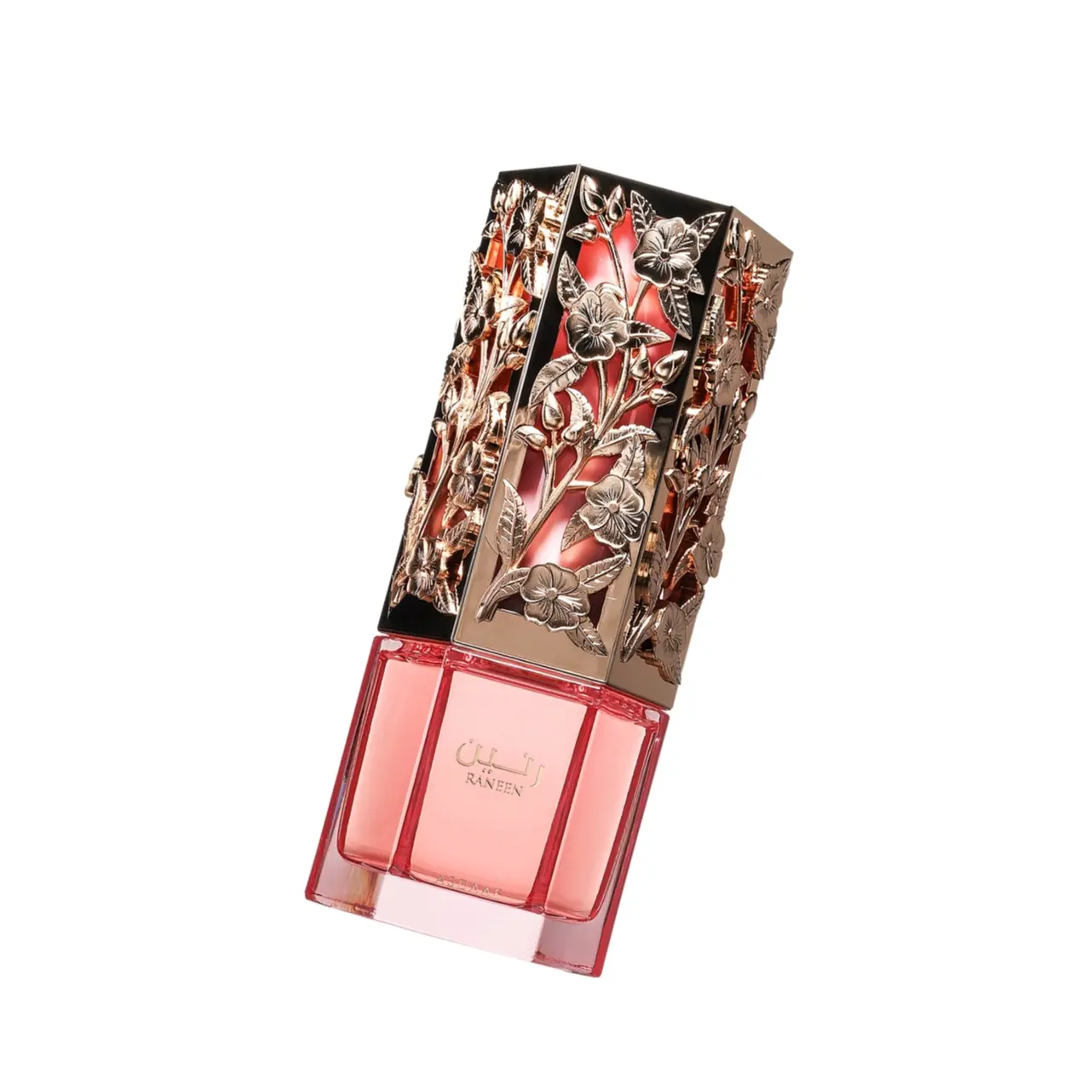 Discover the radiant charm of Raneen by Lattafa Asdaaf, a fragrance crafted for women who embrace elegance with a modern, playful twist. This Eau de Parfum blends vibrant fruits, delicate florals, and warm sensual undertones into a captivating scent that lingers beautifully.