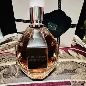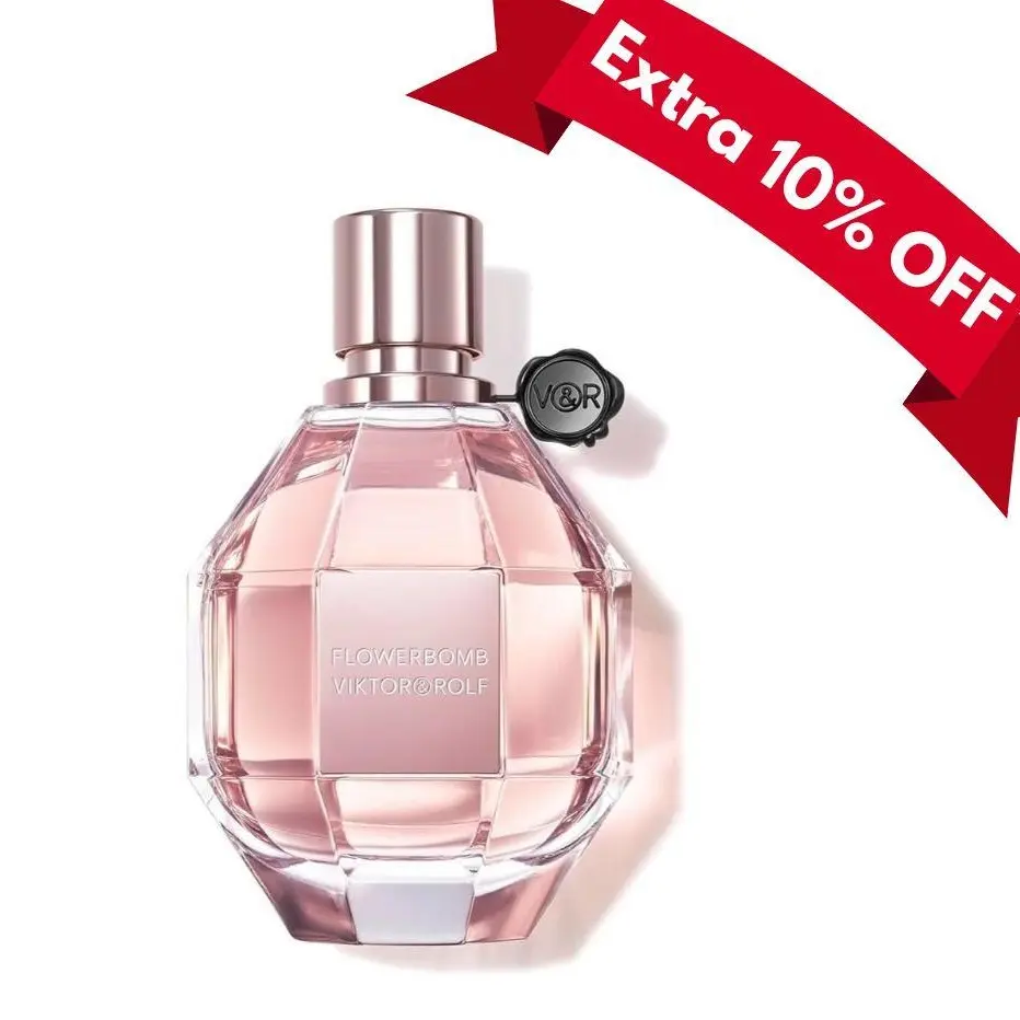 Flowerbomb comes in a luxurious diamond-grenade-shaped bottle, designed by Fabien Baron, that embodies the aura of this fragrance. The standard 3.4 oz bottle is perfect for collectors, while the tester version offers the same exquisite fragrance at a value price, typically with simplified packaging and without a decorative cap.