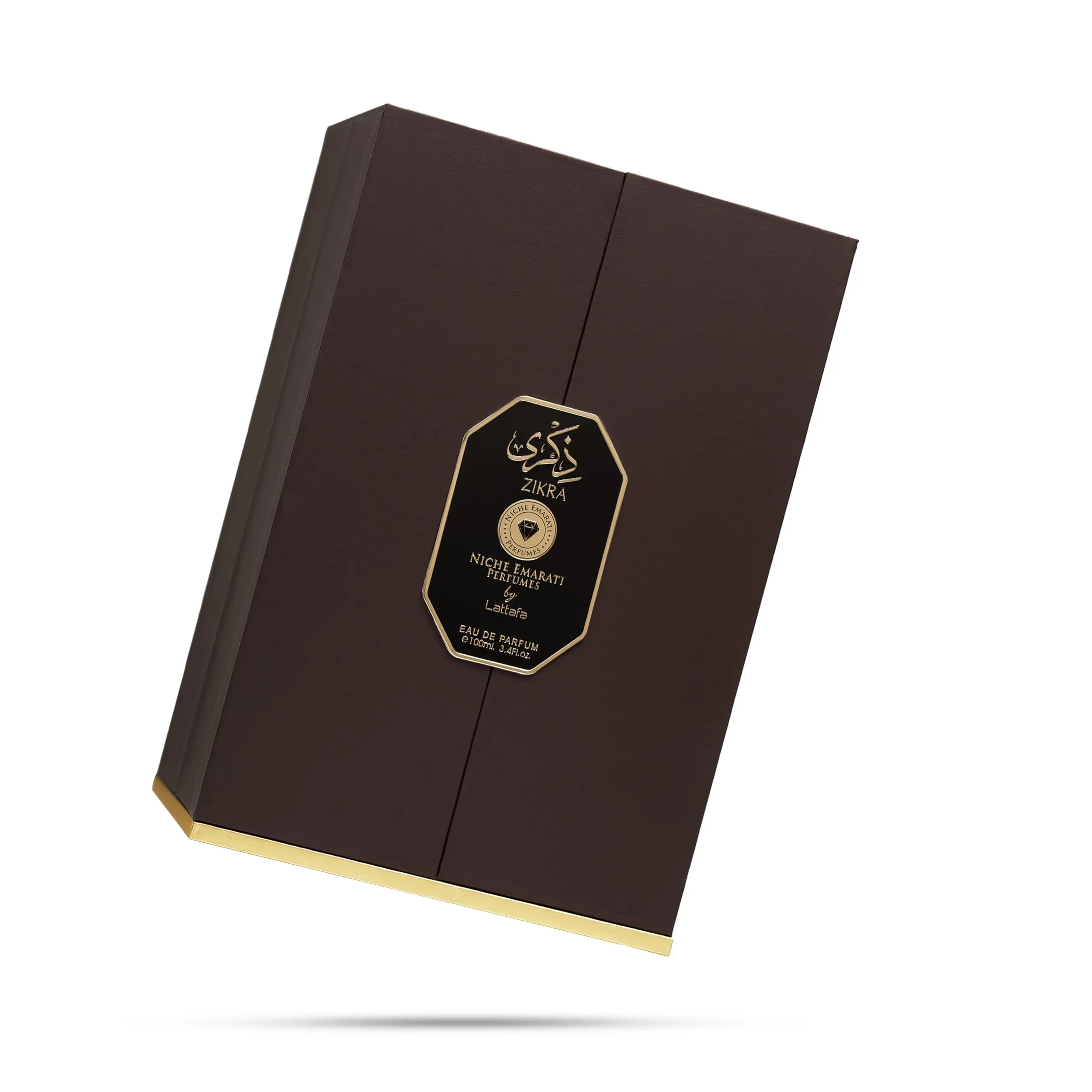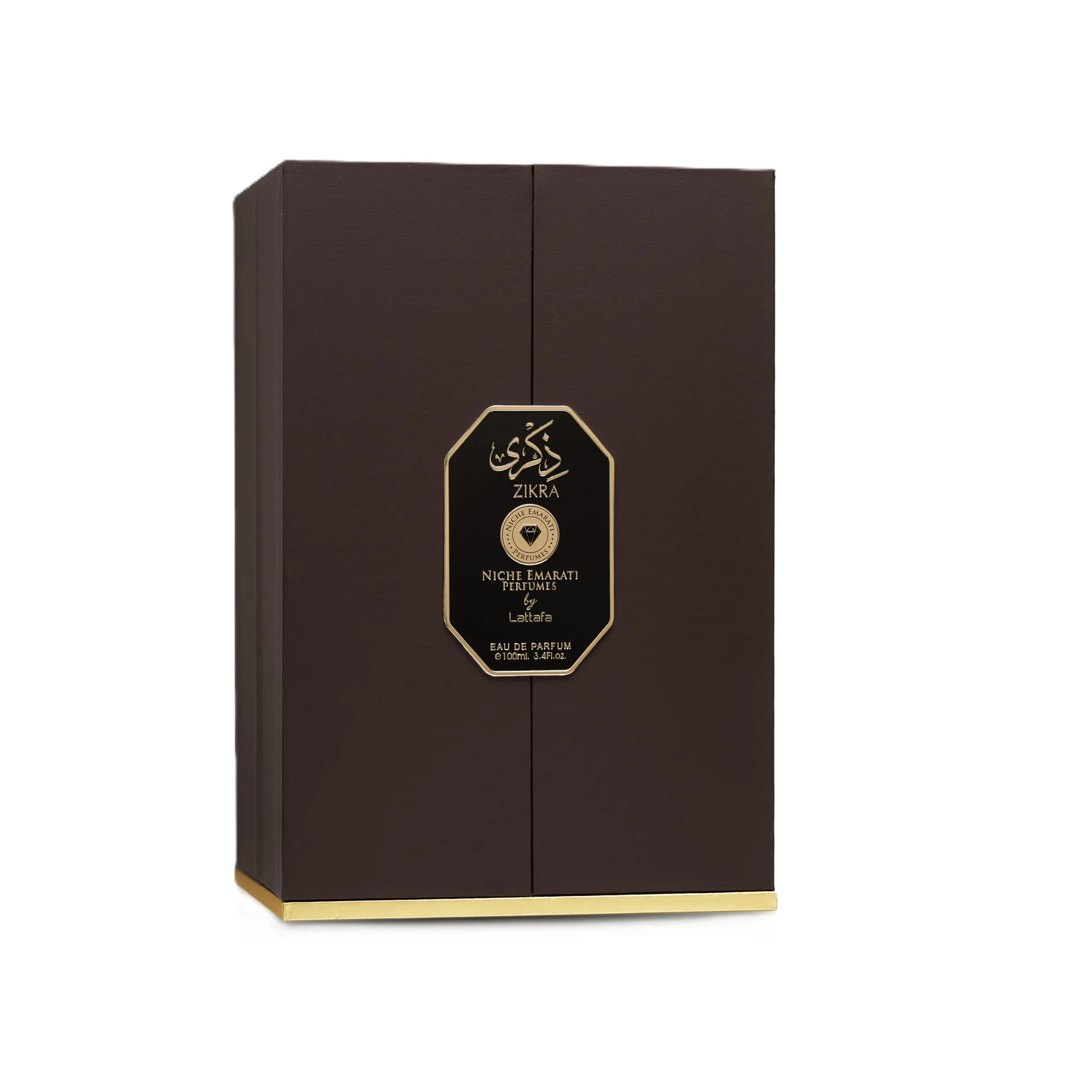 Experience the luxurious and sophisticated scent of Lattafa Niche Emarati Zikra Eau de Parfum Spray, a unisex fragrance that captivates the senses.