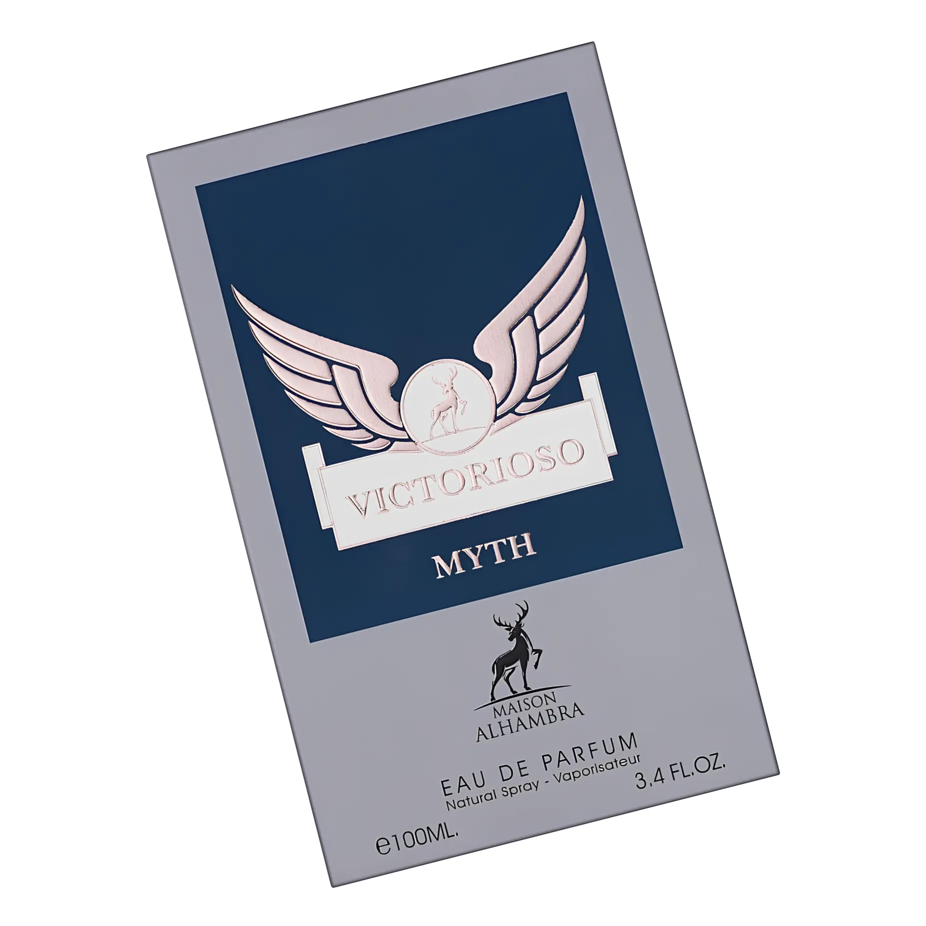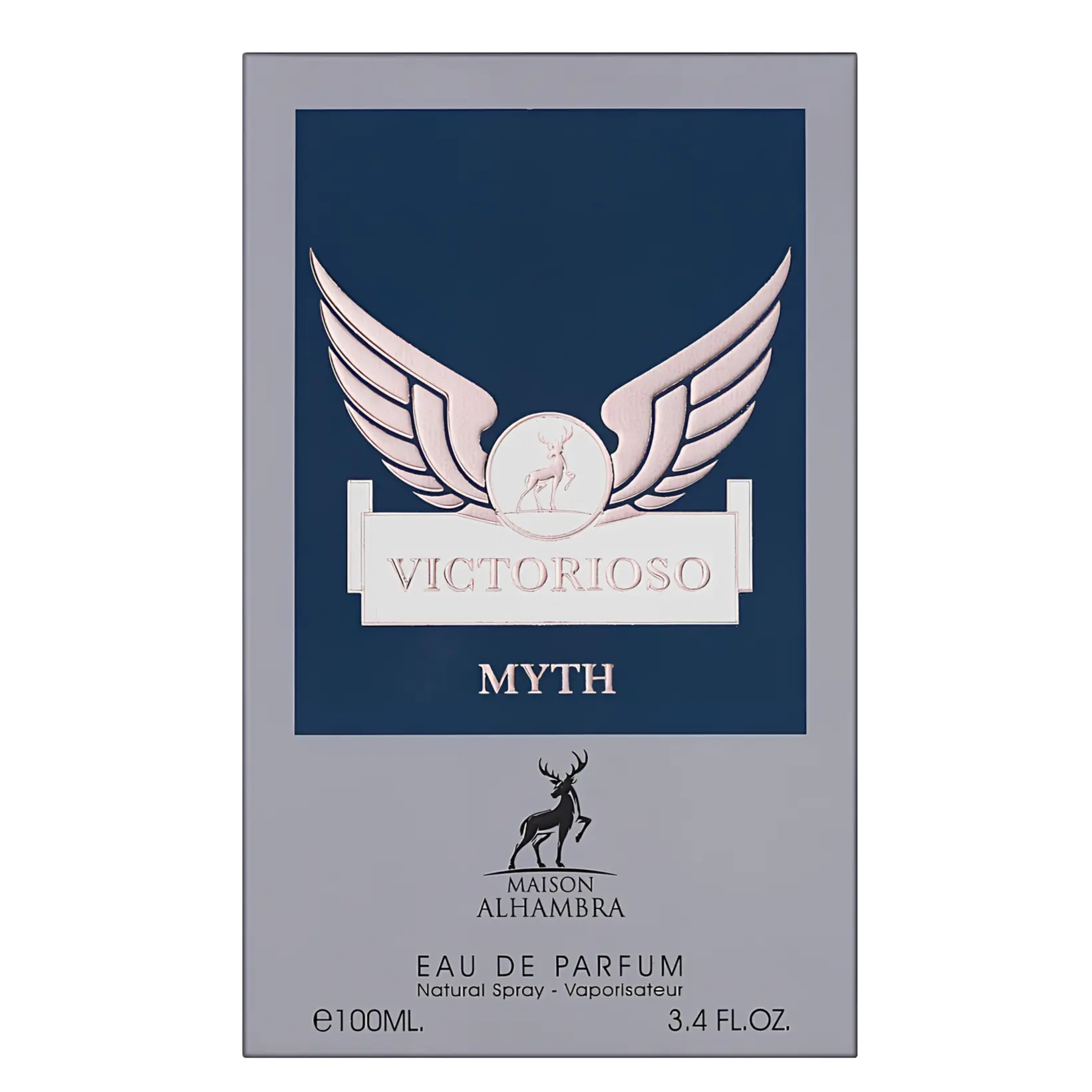Discover the luxurious scent of Maison Alhambra Victorioso Myth Eau de Parfum Spray, a captivating blend of aromas designed to enhance your fragrance experience.
