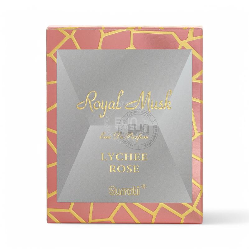 Indulge in the Surrati Royal Musk Lychee Rose and experience the essence of elegance and sophistication with this beautifully designed bottle.
