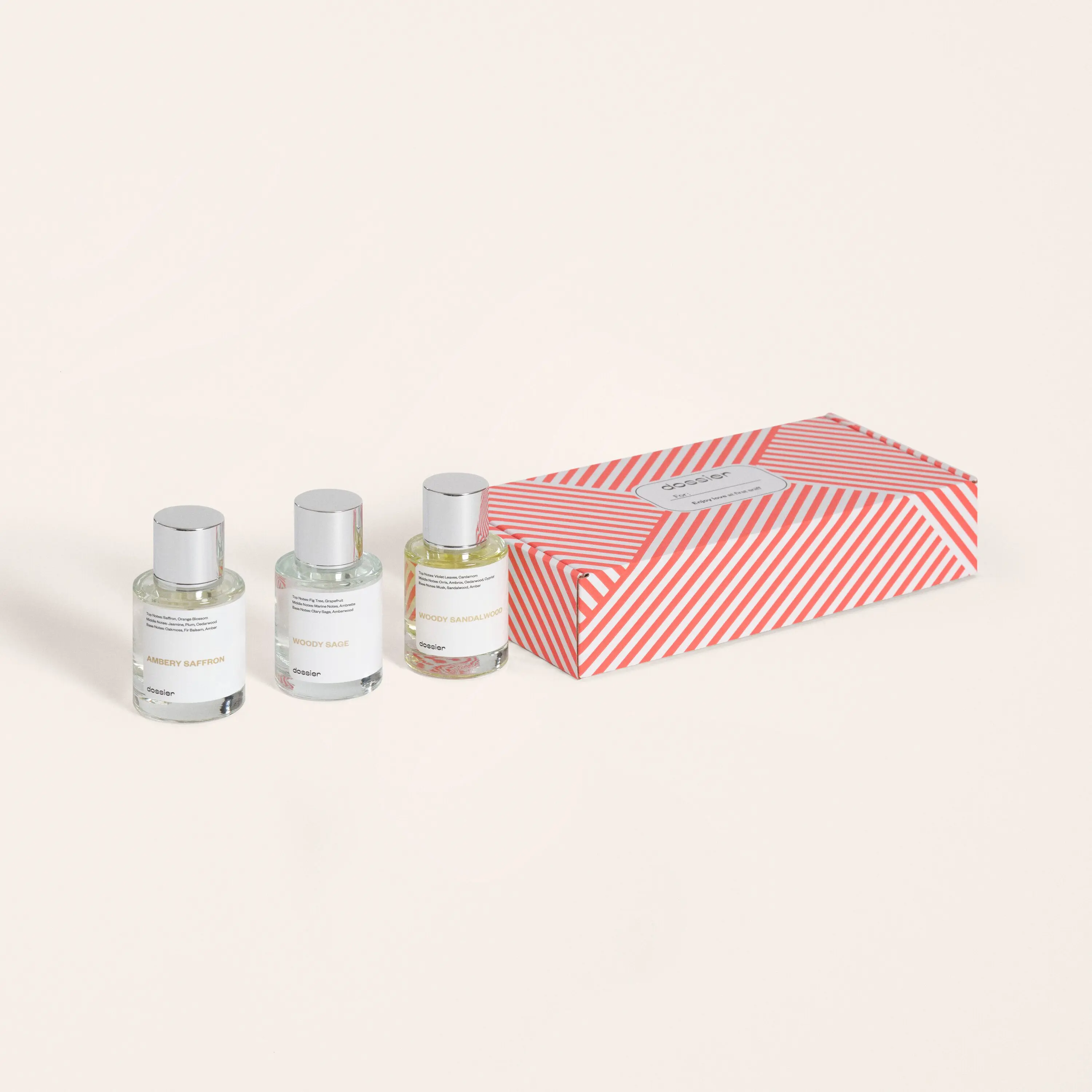 Included: Ambery Saffron 50ml, Woody Sandalwood 50ml, Woody Sage 50ml
