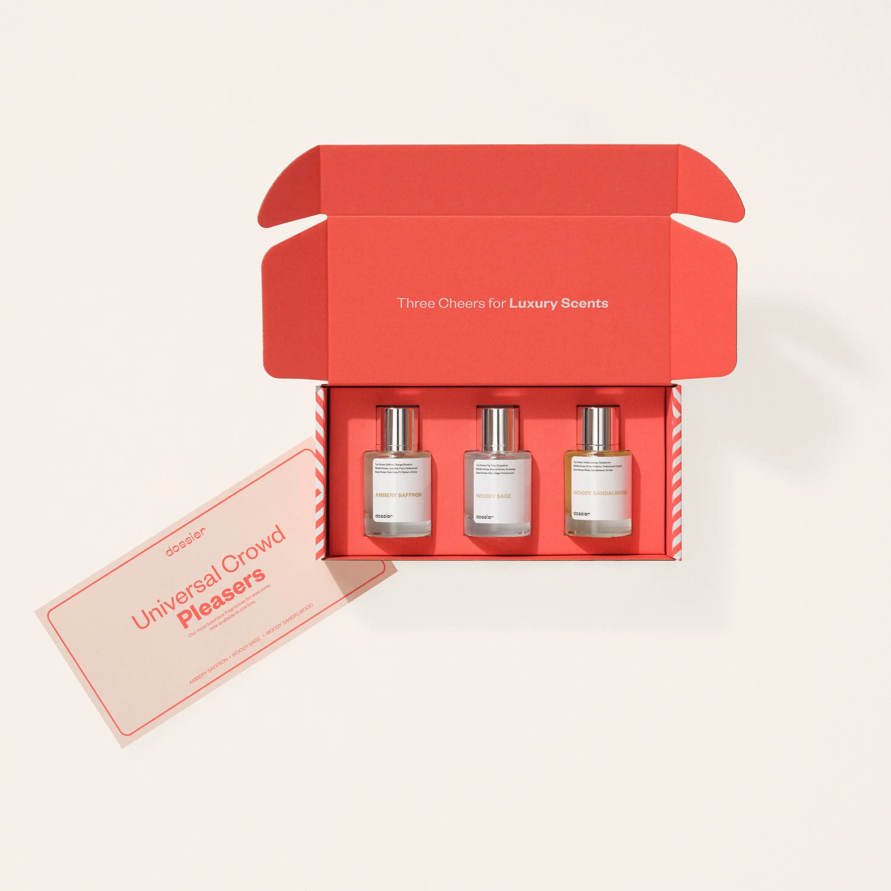 Our two best sets: All-Time Bestseller with Ambery Saffron, Ambery Vanilla and Floral Marshmallow // Universal Crowd Pleasers with Ambery Saffron, Woody Sandalwood and Woody Sage