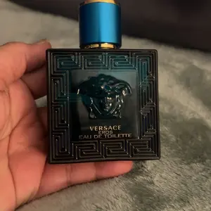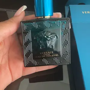 The iconic turquoise-blue bottle reflects the strength and vibrancy of Greek mythology, featuring the signature Versace Medusa emblem and bold geometric design. Elegant and striking, it represents the power and confidence of the Eros man.