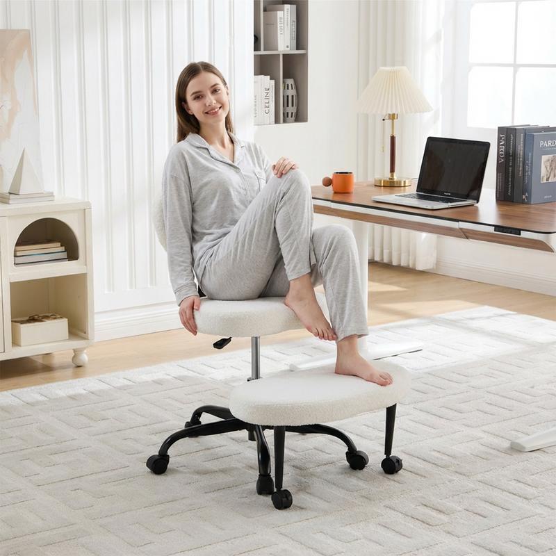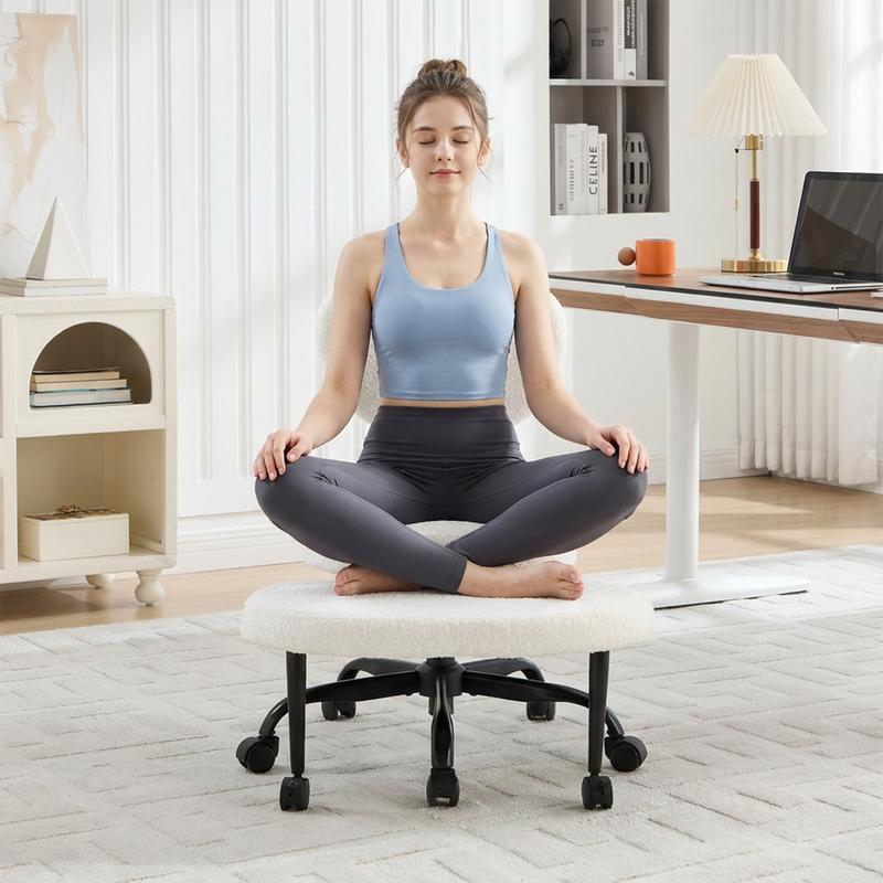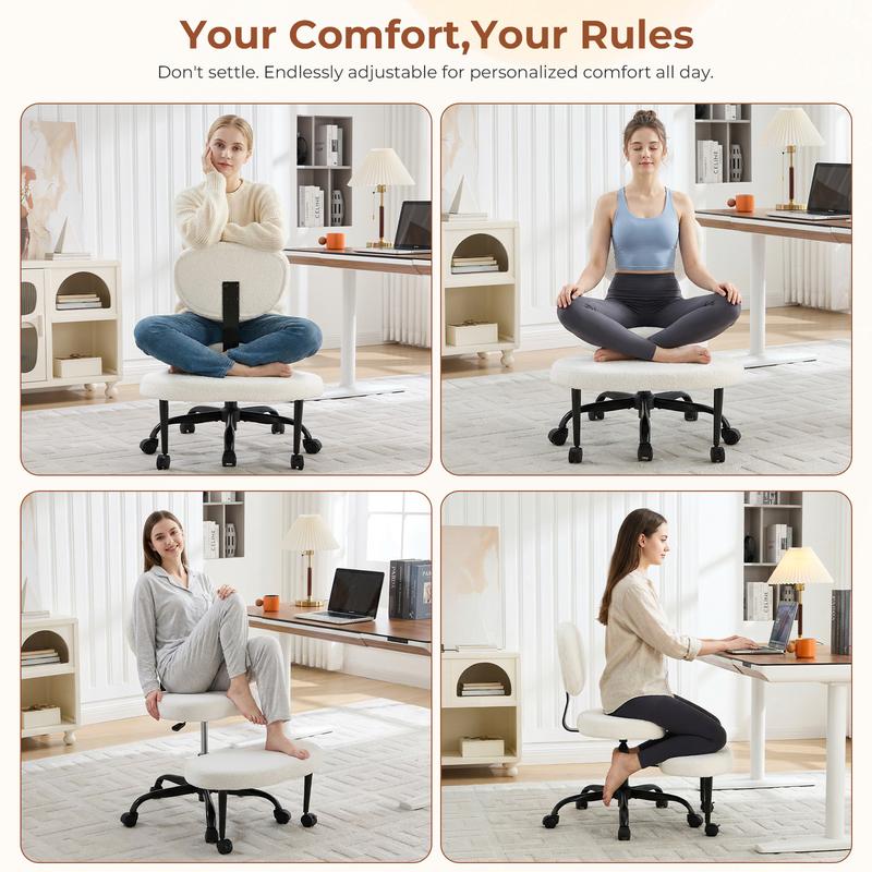 Ergonomic Cross Legged Swivel Chair, Adjustable Height and Teddy Fabric, Meditation Chair with Back Support: Unique 2-layer design and can be used for cross-legged, squatting, kneeling and other postures. It can be adjusted to different angles of your body, helps you relax the body, promote blood circulation and reduce leg swelling or numbness caused by prolonged sitting. Chair dimensions: D 24.4/30" * W 25.6" * H 31.1-35"