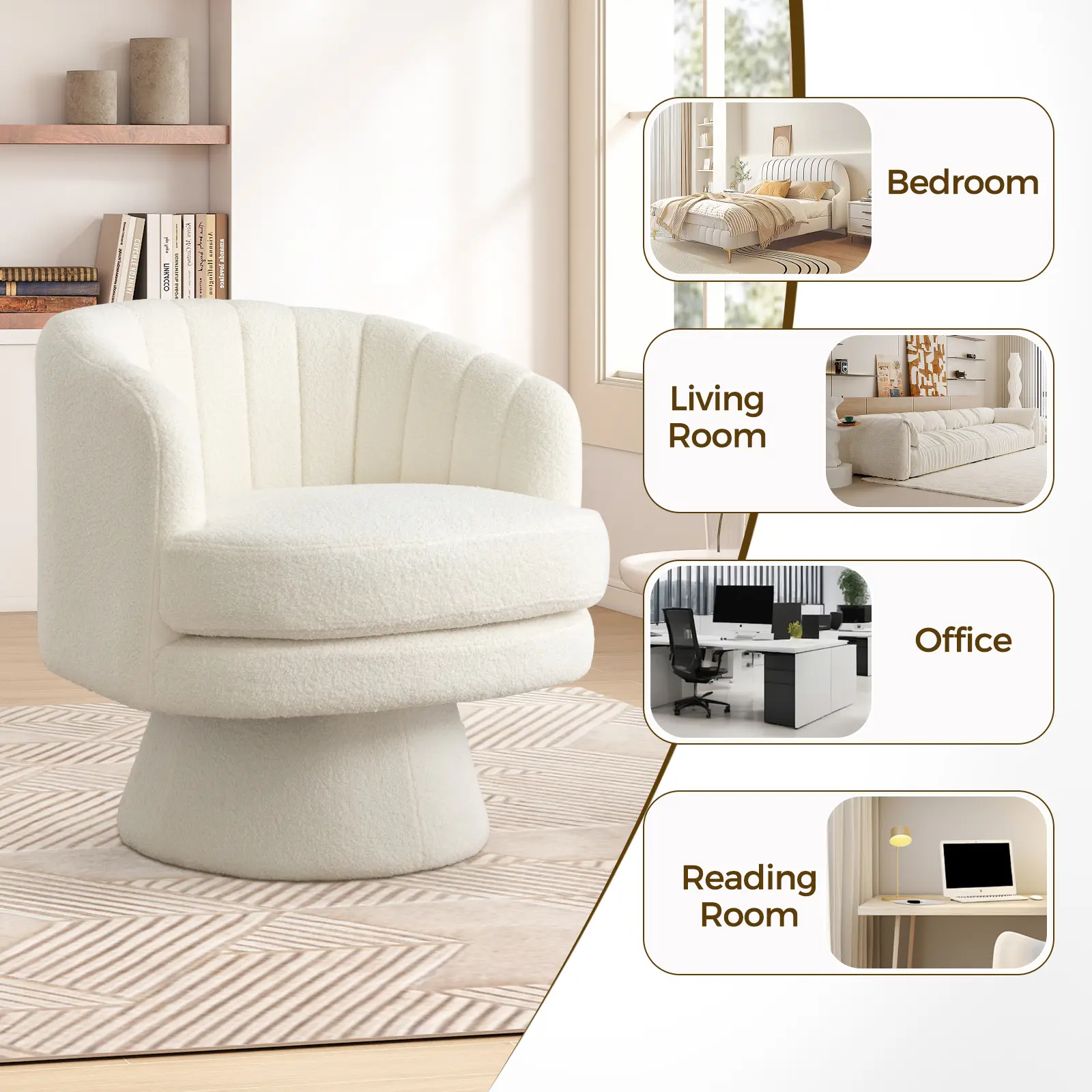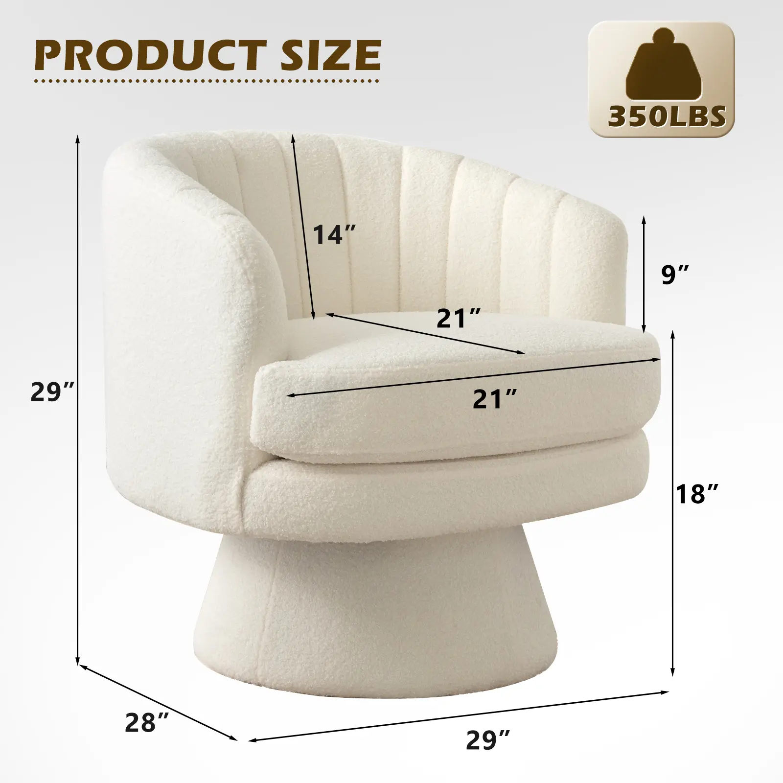 ·Sturdy Base and Frame: The 360-degree rotation barrel chair with a base made of strong metal material and a frame made of solid wood, provides you with strong carrying capacity and high safety, prolonging its service life. Maximum load capacity: 350 lbs.