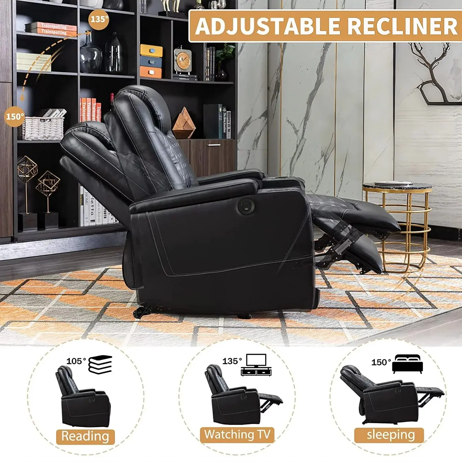 ·Deluxe Back Texture Design: The faux leather recliner features a luxurious back texture, adding elegance to living rooms, bedrooms, and theater rooms. Its overstuffed armrests and cushions provide ultimate comfort and style