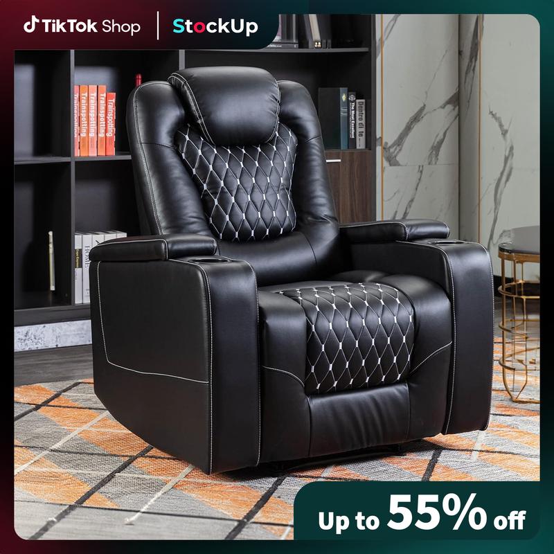 ·Power Electric Recliner Chair: Adjust the footrest and backrest easily with two buttons. The breathable PU leather ensures comfort, moisture absorption, and easy cleaning, making it perfect for movie nights or gaming in your home theater