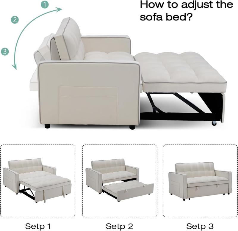 ·Versatile 3-in-1 Design: This convertible sofa bed effortlessly transforms from a stylish loveseat to a comfortable lounge sofa and a convenient pullout sofa bed. Its multifunctional design makes it perfect for small spaces and versatile living arrangements.