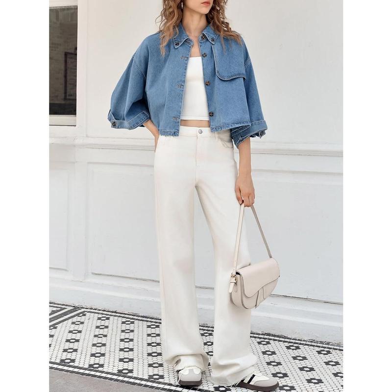 ·Trendy Design: Featuring a stylish collared design and button down front, this basic denim jacket is an ideal crop cape coat that adds a chic touch to your autumn outfits.
