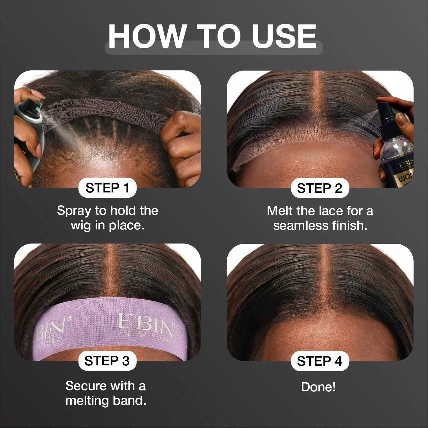 Get the perfect, flawless lace install every time! This exclusive EBIN bundle includes our top-selling Adhesive Spray, Melt Spray, and a FREE Melting Band. The ultimate trio for securing, melting, and blending your lace with ease.