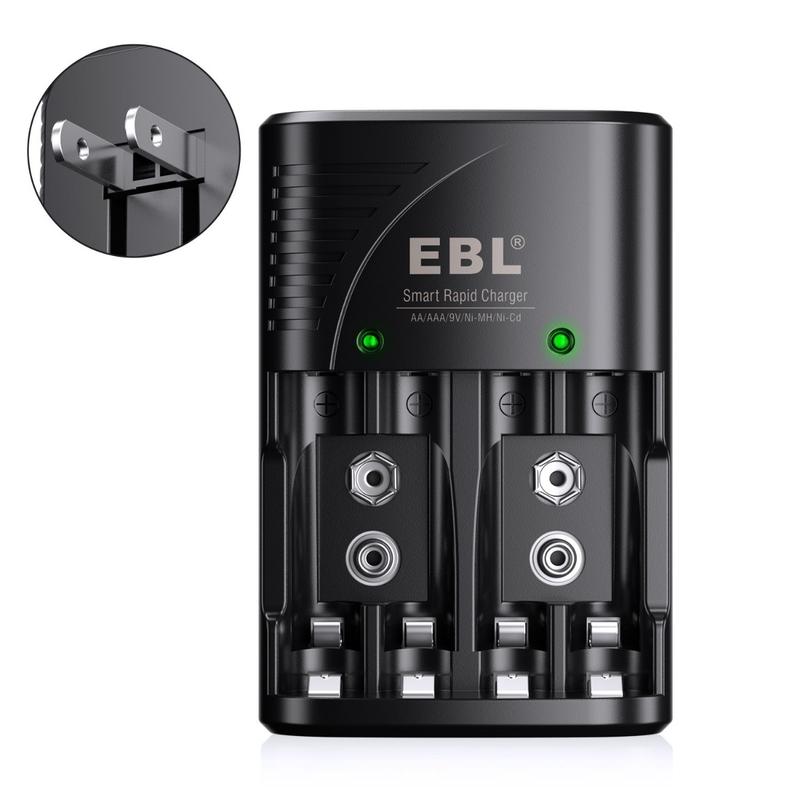 EBL-802 battery charger could freely charge 2/4 AA/AAA Ni-MH/Ni-CD rechargeable batteries in pairs, and also charge 1/2 pieces 9V Ni-MH/Ni-CD batteries individually.