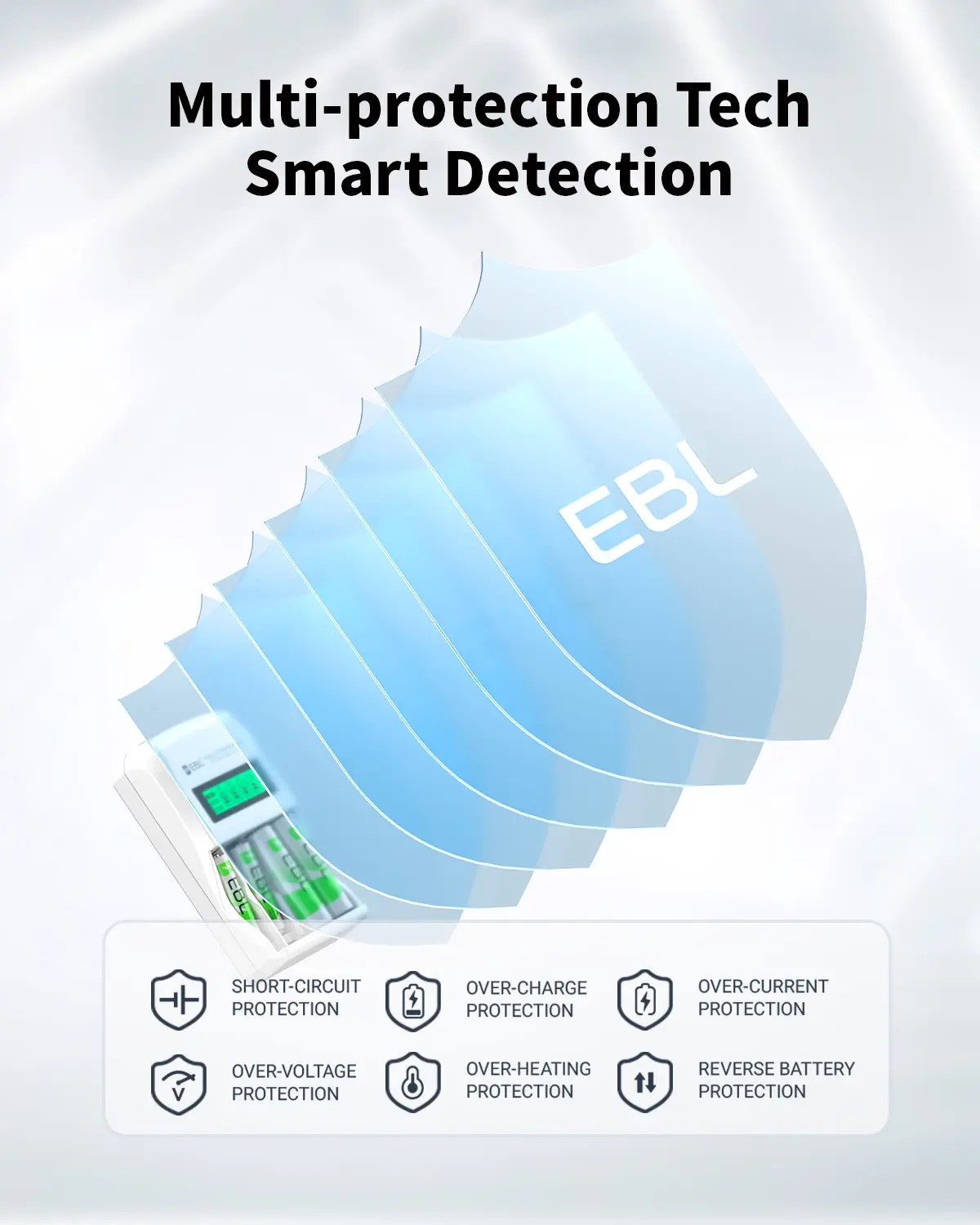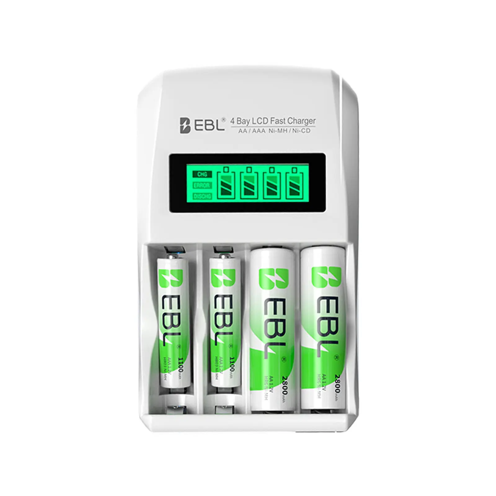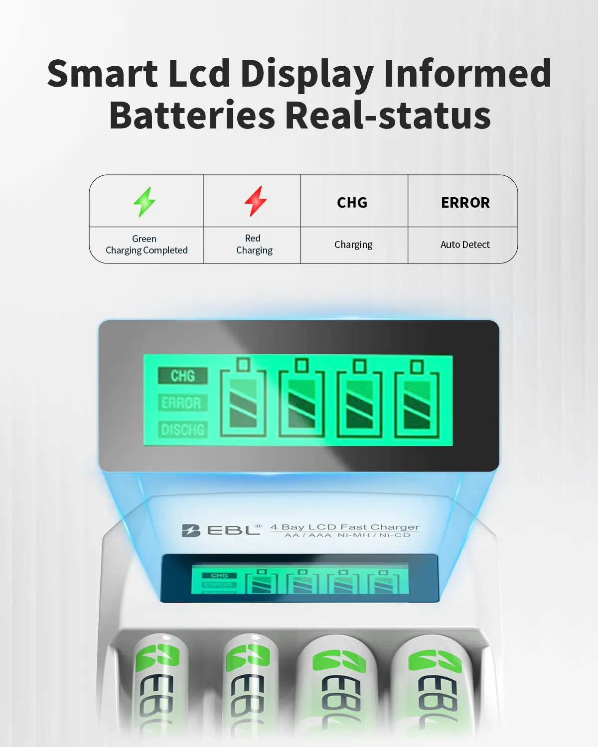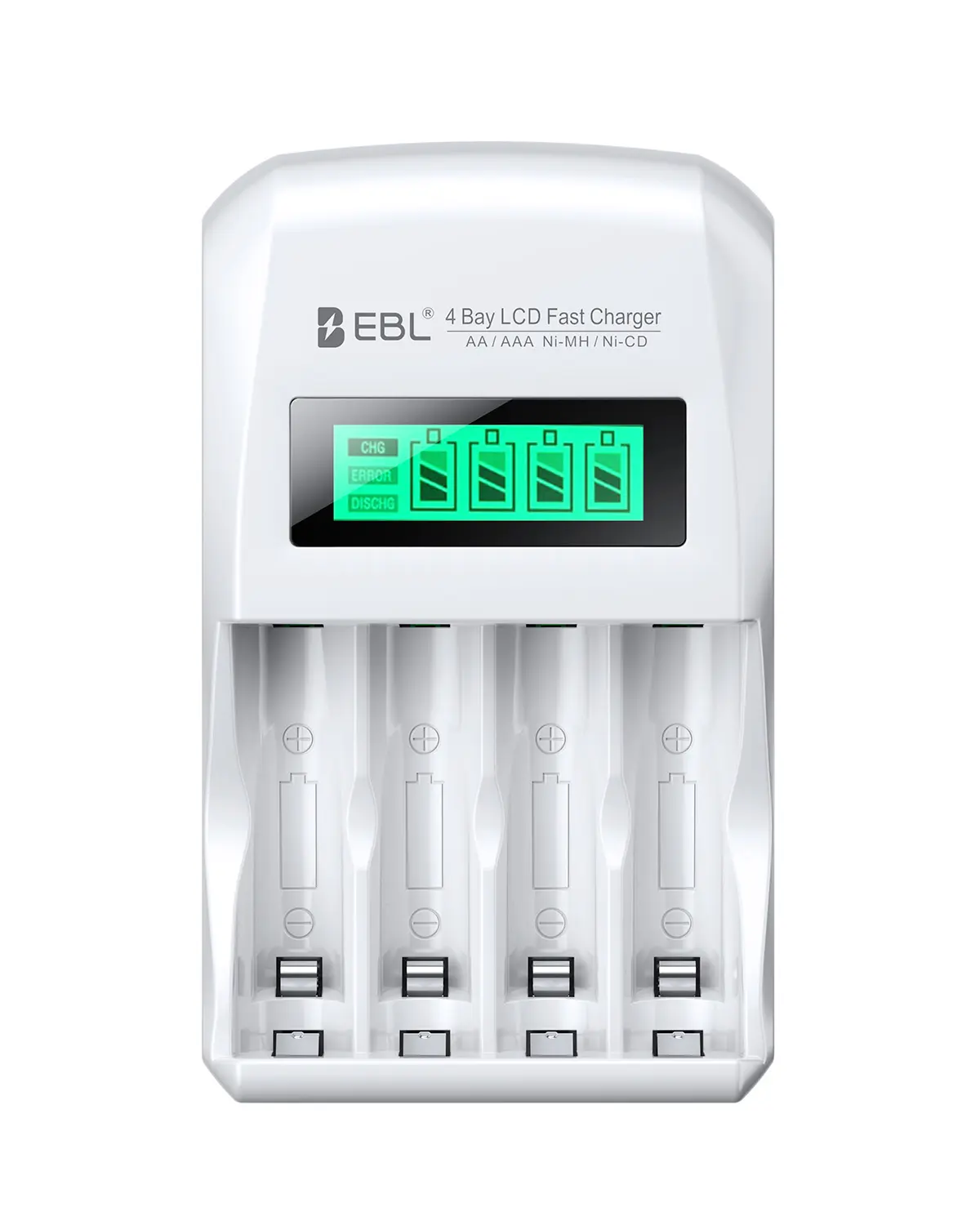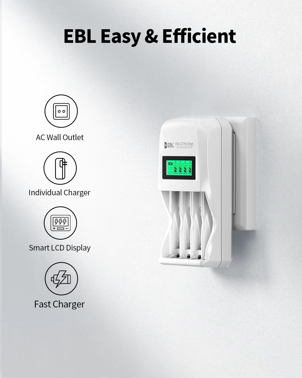EBL Rechargeable Battery & Smart Charger Kit | LCD Display, Fast & Safe Charging for AA/AAA