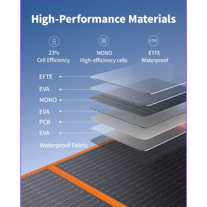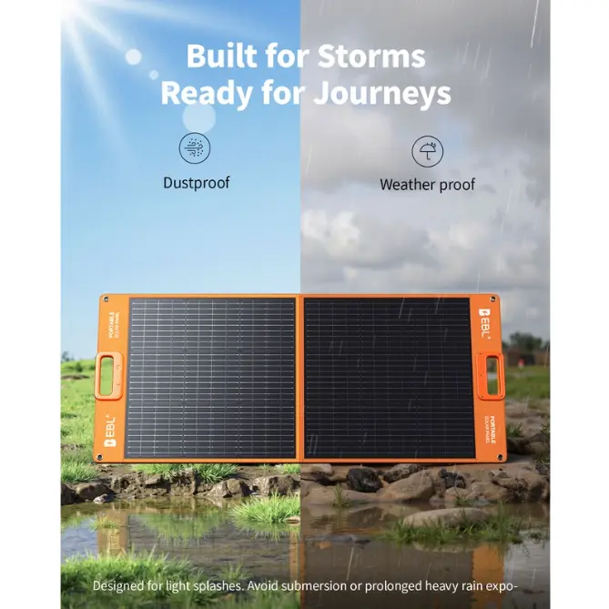 ·EBL 100W solar panel is made of advanced laminated technology and long-lasting ETFE material.