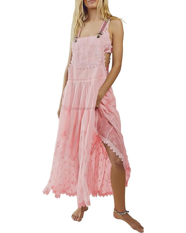 ·Design: This trendy summer beach boho dress boasts a cute bib neckline, delicate lace details, and an embroidered tulle paneled hem—blending vintage charm with modern flair for the ultimate vacation-ready look!