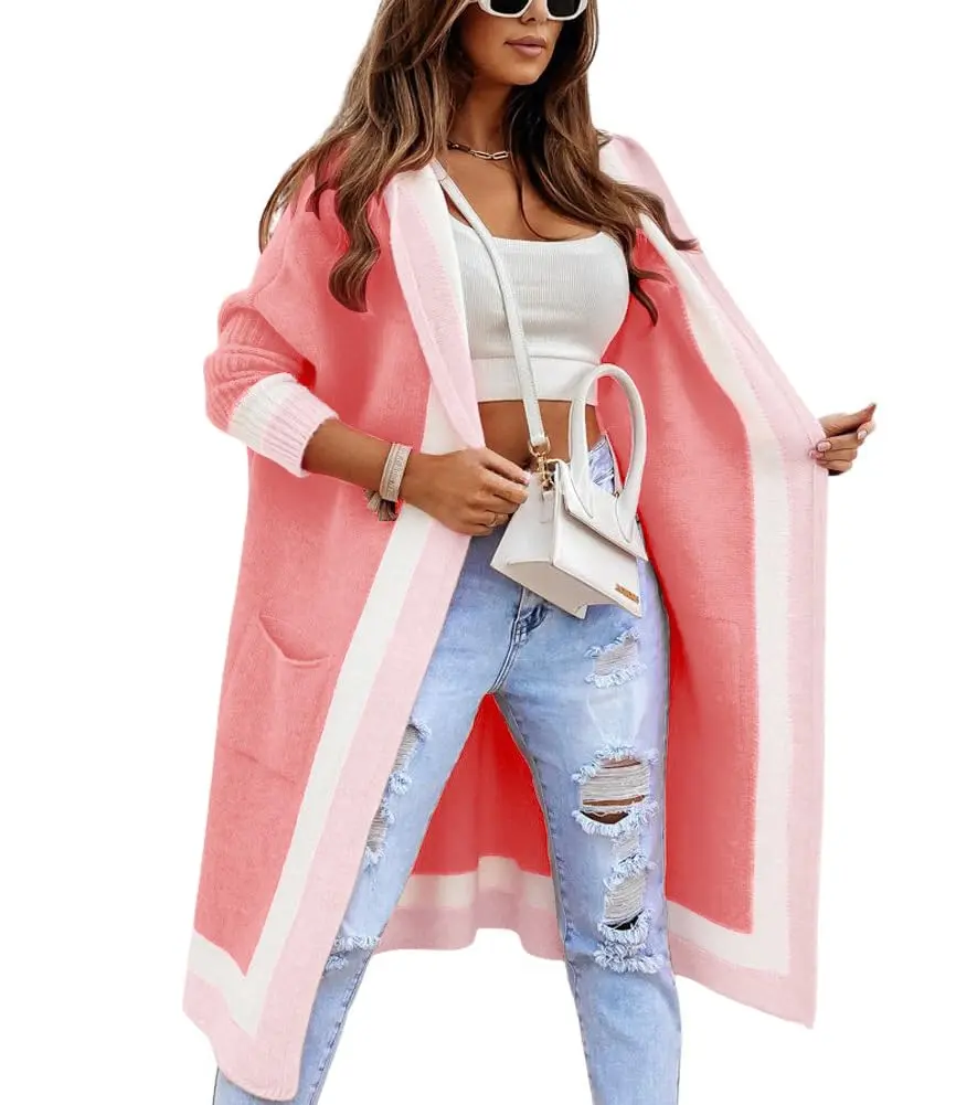 ·Women’s Cardigans:Trendy knitted cardigan sweaters for women, featured in contrast color block striped detailing, with pockets and hood for convenience, flattering and comfortable to wear