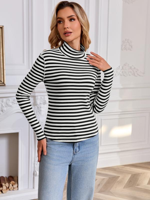 Style:Pair this stylish striped turtleneck long-sleeve top with blazers, coats, jeans, shorts, skirts, leggings, sneakers or heels for effortless looks—loved in every season! This women’s casual striped shirt flatters your figure, boosts your charm, and keeps you standing out.