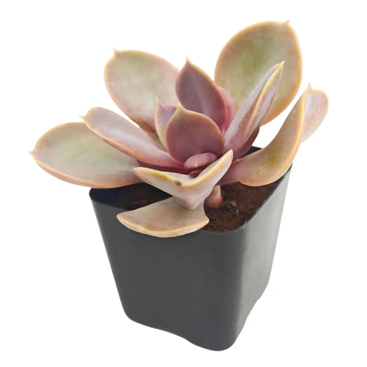 · Echeveria ‘Red Sky’ is a stunning hybrid succulent known for its soft pink to coral-toned leaves with a velvety finish. Its broad, slightly cupped foliage forms a symmetrical rosette that resembles a blooming flower. Under bright light and cooler temperatures, the leaf edges deepen in color, creating a warm, sunset-inspired look. This compact succulent reaches 3–5 inches tall with rosettes growing up to 5–6 inches wide.  Produces delicate pink blooms in season and is easy to propagate, making it a beautiful and beginner-friendly addition to any succulent collection.