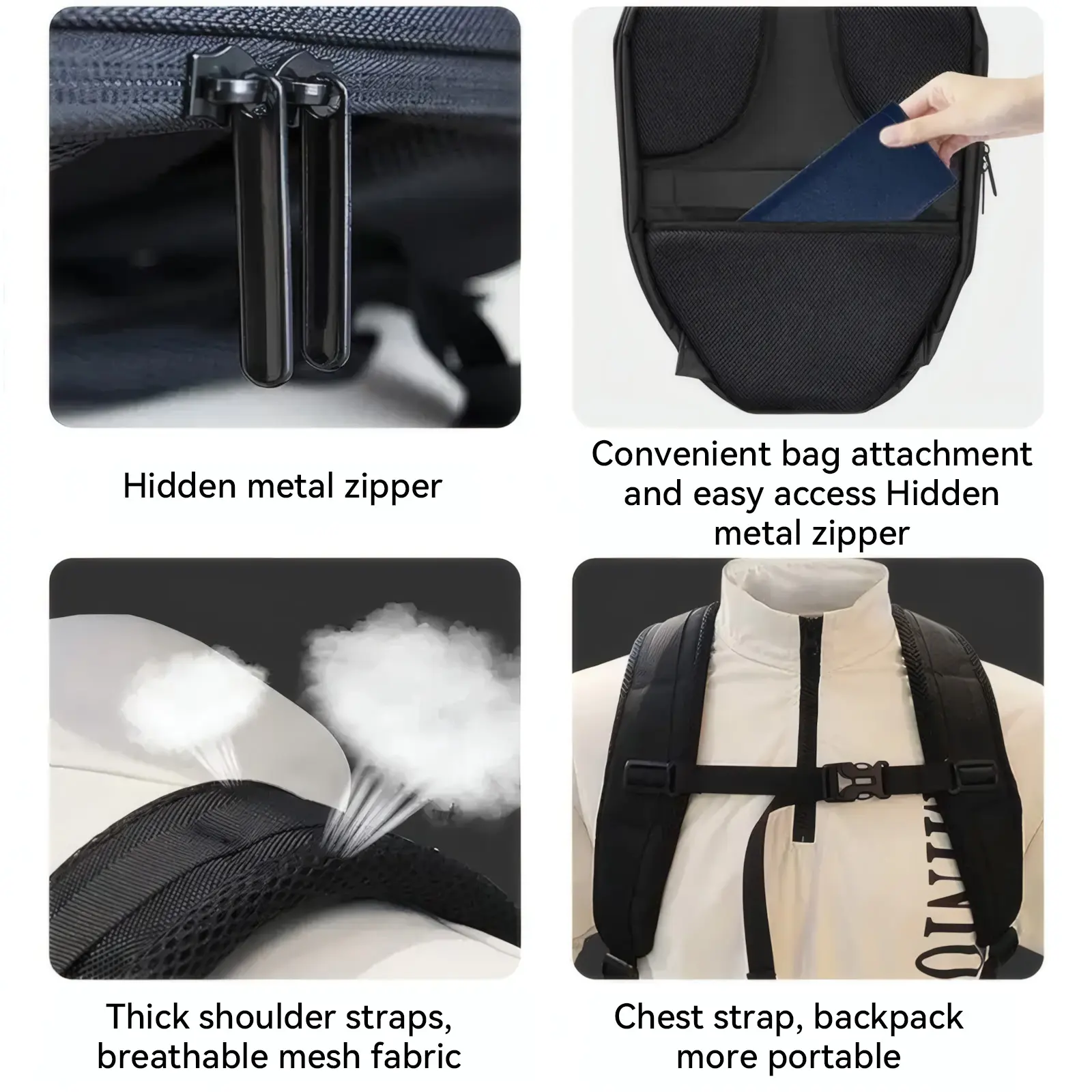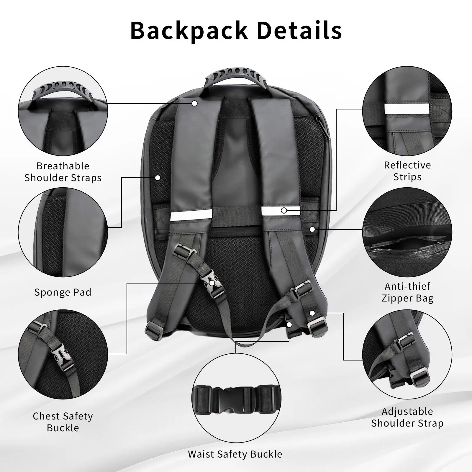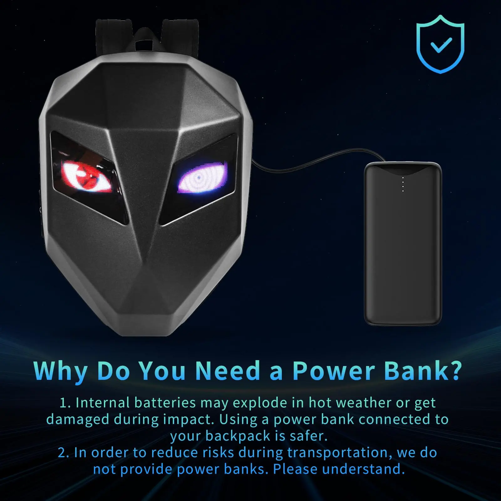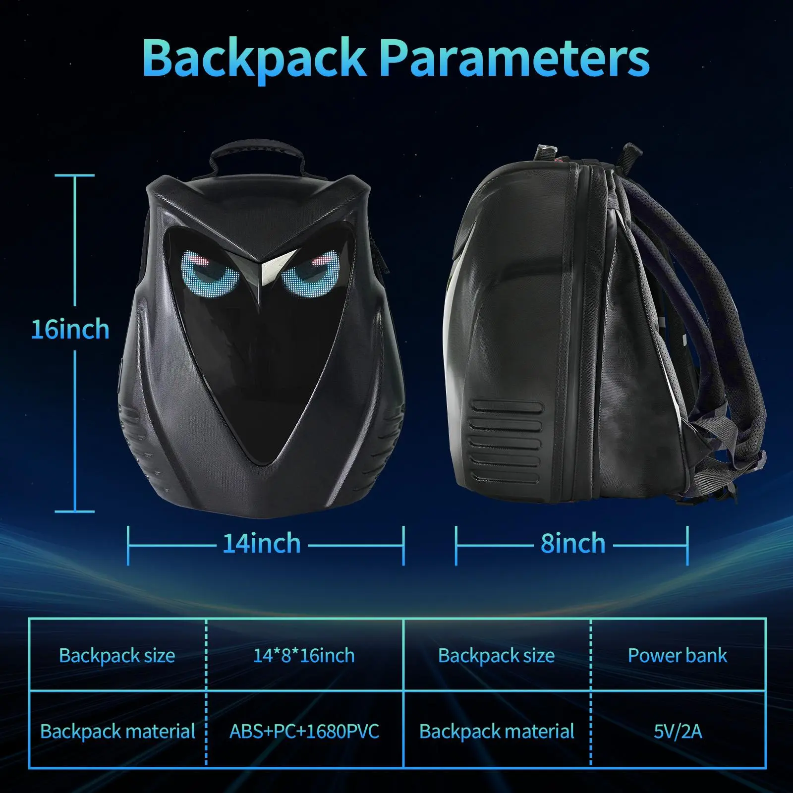 ·How to Use: Search on your mobile phone or directly scan the code to download the APP, plug in the mobile power supply through the built-in USB data port on the back, turn on the Bluetooth and scan the QR code to bind the backpack. You can connect the device and use it.