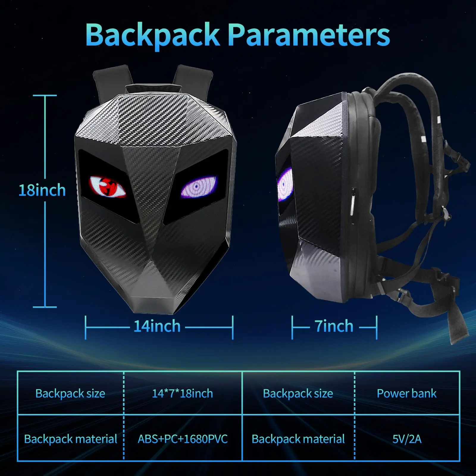 ·Premium Quality: This LED motorcycle backpack features durable 3D waterproof material, a 48x48 full-color screen for text and GIFs, adjustable straps, and a breathable back panel.