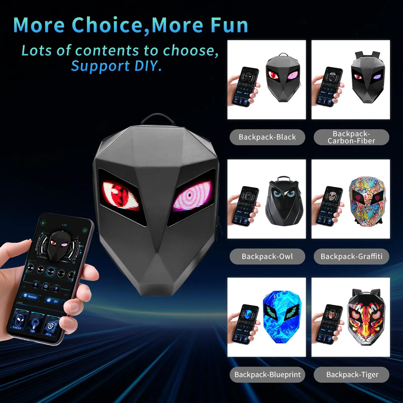 ·Enjoy Unrestricted Fun: The backpack’s matching app comes with a rich material library (dynamic stickers, text, etc.) and supports customization, letting you enjoy DIY fun.