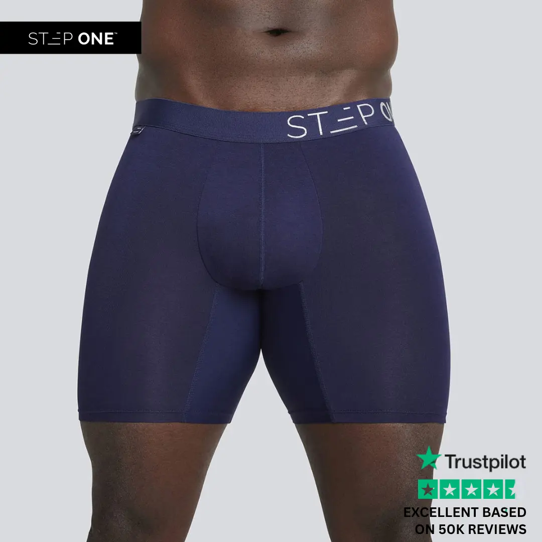 Step One Men's Boxer Briefs are designed with innovative comfort features and premium eco-friendly materials to provide unmatched support and breathability throughout your day. UltraGlyde Panels – Friction-resistant, anti-chafe panels prevent leg ride-up and eliminate the need for constant adjustments. No riding up, no re-adjusting! Hidden 3D Comfort Pouch – A hidden elastic band surrounds the pouch area to keep everything comfortably and securely in place, providing support all day. Super Soft & Breathable Fabric, Viscose derived from Bamboo – Made from a blend of 95% viscose derived from bamboo and 5% spandex, this fabric wicks away moisture, promotes airflow, and is gentle on sensitive skin. Produced using a closed-loop system for minimal environmental impact. Inclusive Sizing – Available in 9 sizes (S to 6XL), making them accessible for every body. If you're between sizes, we recommend sizing up for optimal comfort. Best Suited For – Guys with thicker legs Our packaging is made from Corn Starch put it with food and garden waste. The packaging may show slight damage upon arrival, but the rest assured, the contents inside remain intact.