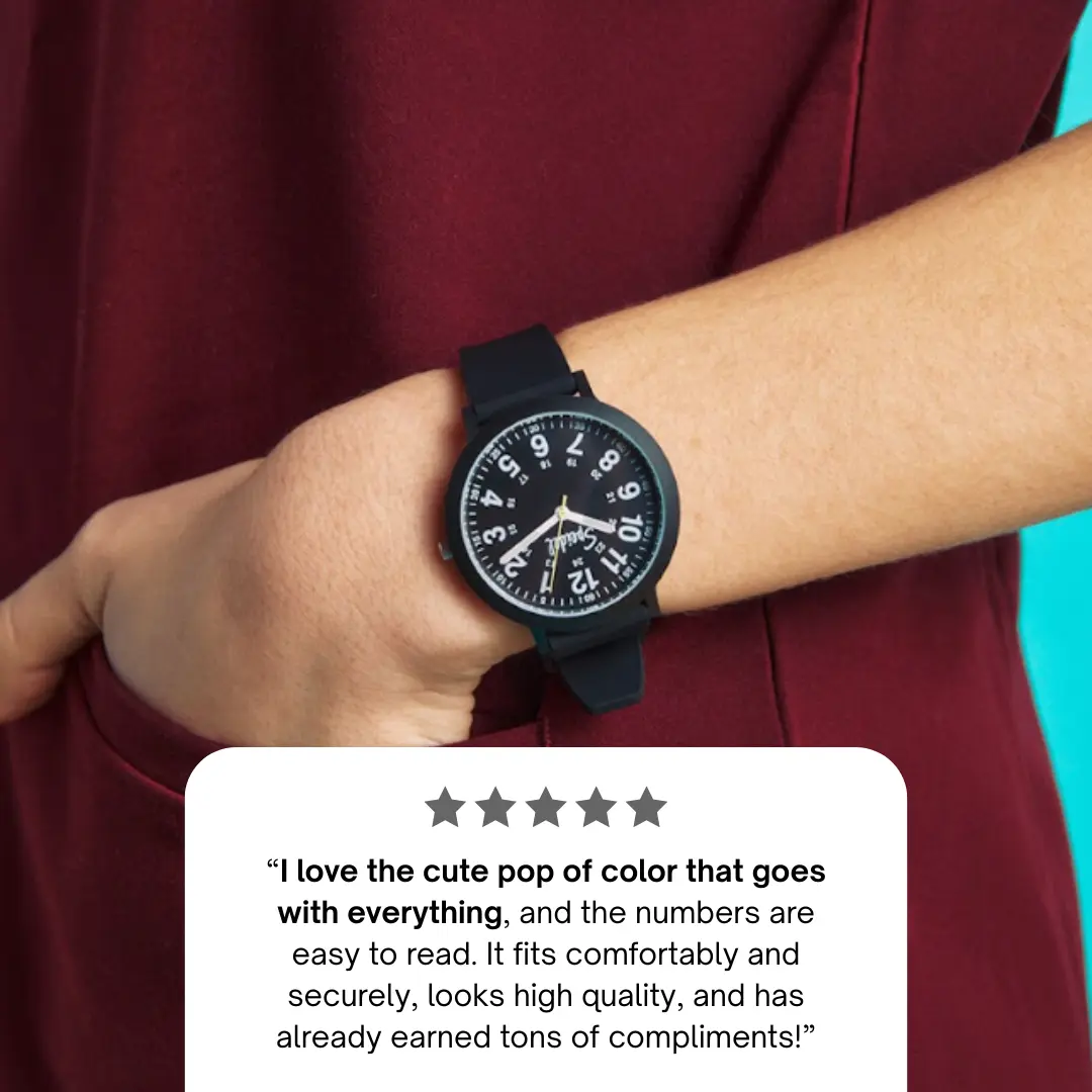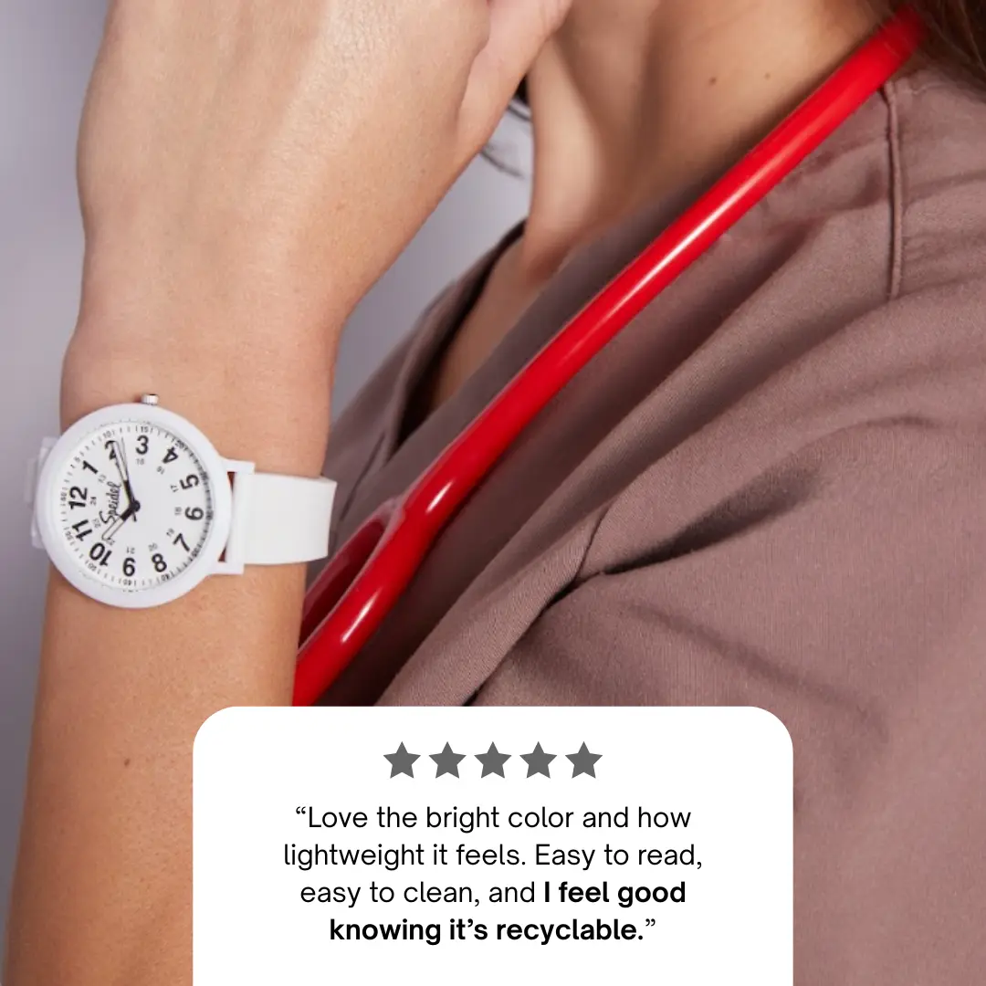 This watch is perfect for being able to access the second hand for vitals! So many colors to choose from so I can wear it with my favorite outfits everytime!