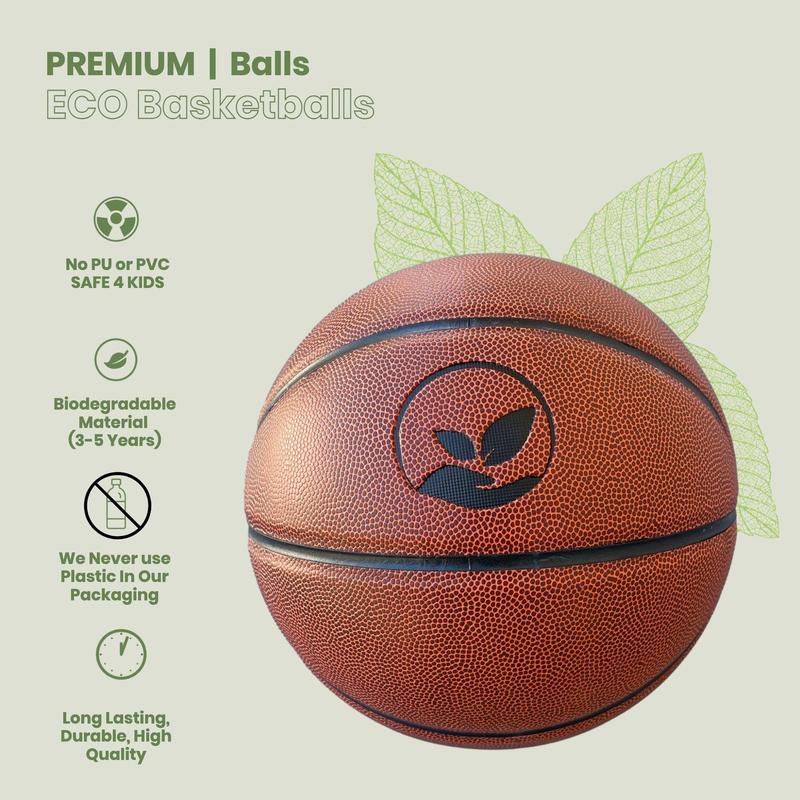 Like all Eco Sports official balls, this edition of basketball is both durable and long-lasting. This women's size basketball is made with vegan leather, which is the key factor to having the ball last a lifetime. No matter the circumstances, inside or out, rain or shine, the eco-friendly women's size basketball is meant to withstand all types of play.