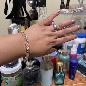 Me llegó justamente ahora, se ve precioso mi pulsera magnética de cobre,color oro rosa, definitiva mente lo volvería a comprar