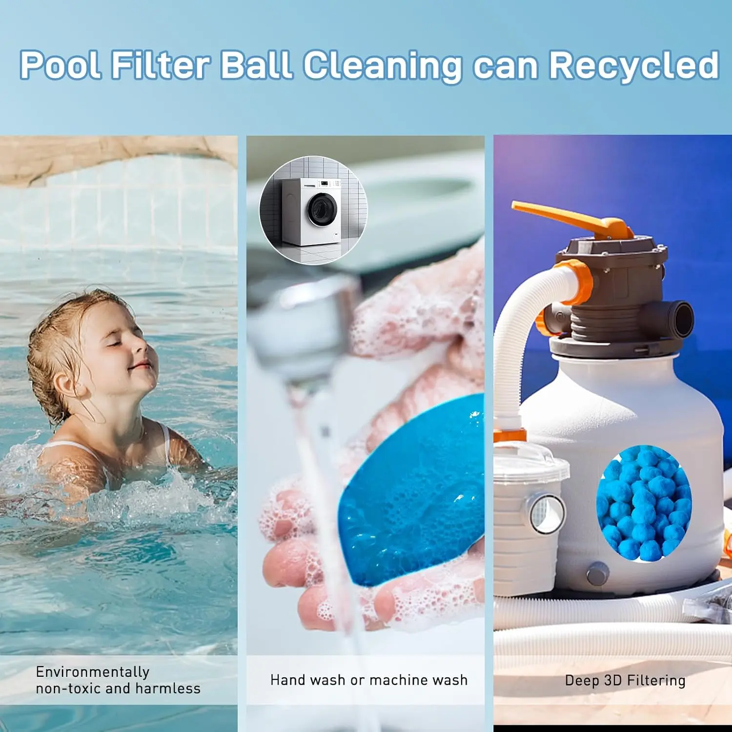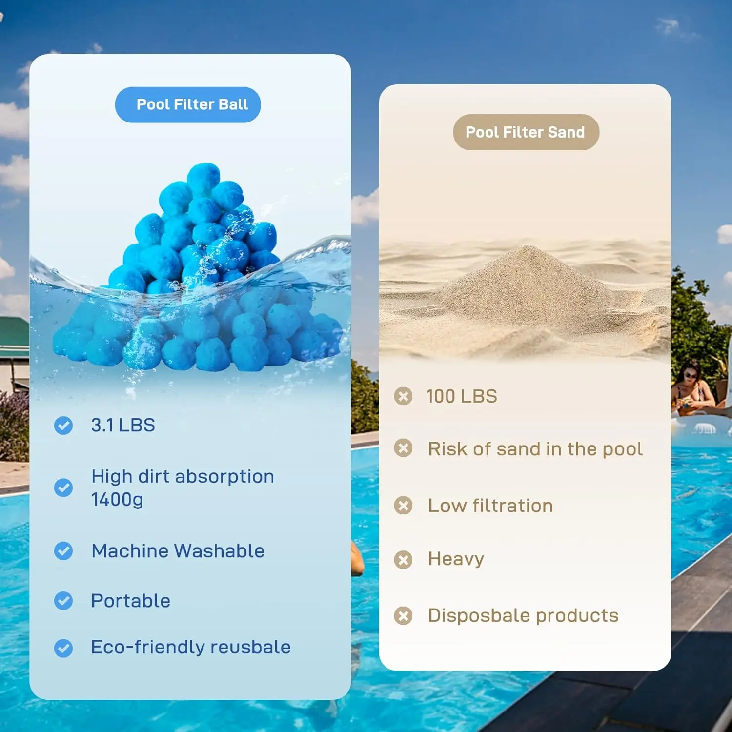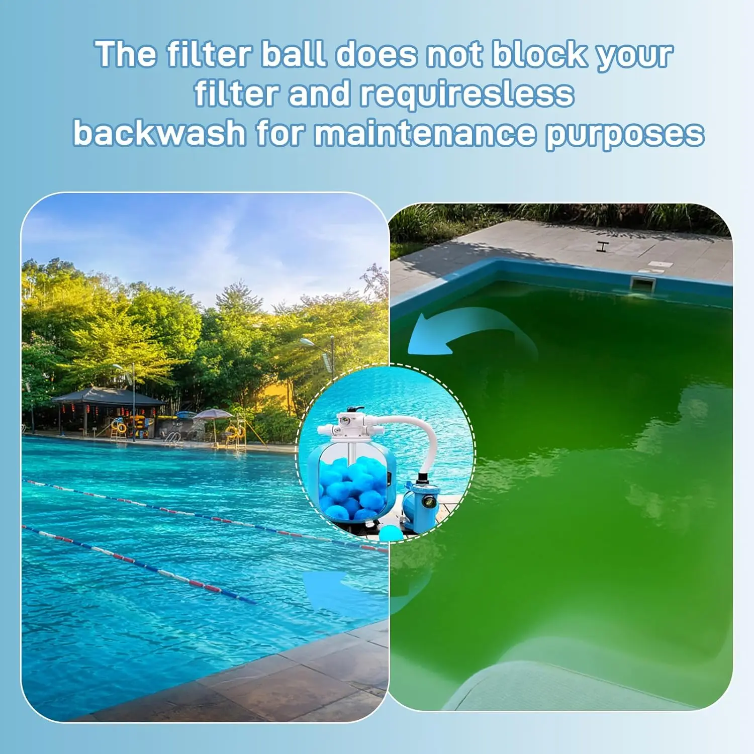 Powerful Filtration: These filter balls filter impurities as small as 5-3 microns, keeping your pool crystal clear. They have a higher filtration rate than traditional sand, giving you more time to enjoy your pool.