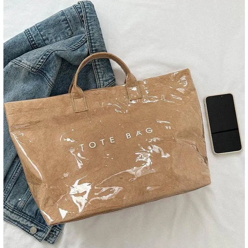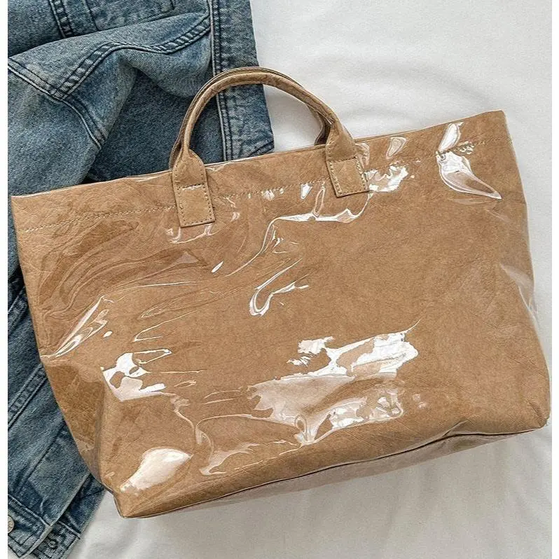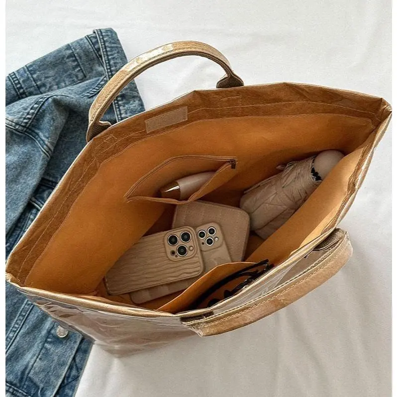 Eco-Friendly Vintage Kraft Paper Tote Bag – Waterproof & Spacious Fall-Winter Must-Have for Women