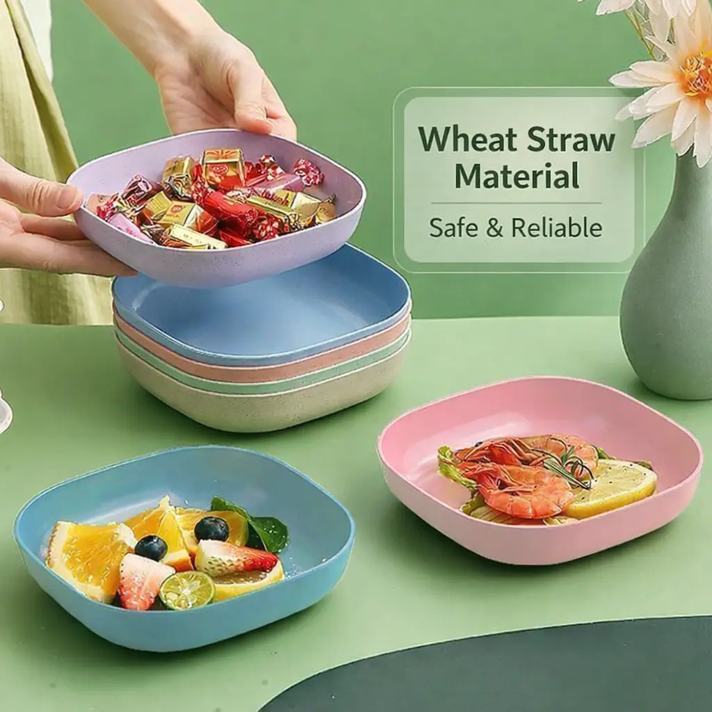 Made from natural wheat straw fiber, these plates are BPA-free, non-toxic, and environmentally friendly. A sustainable alternative to traditional plastic tableware.