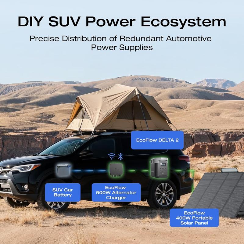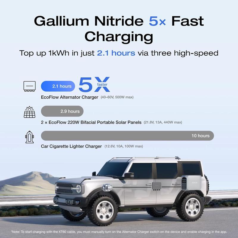 ·[5× Faster Than a Car Cigarette Lighter Charger] The 500W Alternator Charger replenishes 1kWh of energy to your portable power station within a 2.1 hour drive, tapping surplus alternator power to keep phones, coffee makers, lights, and more running on the move.