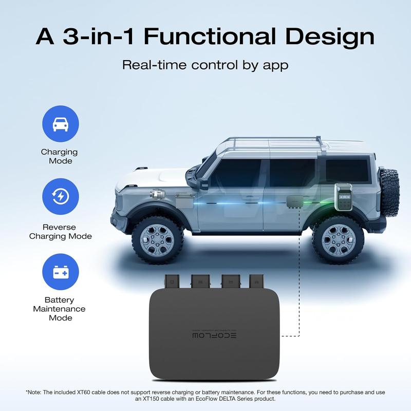 ·[3-in-1 Functional Design] Integrates alternator charging, vehicle battery maintenance, and jump-start capability into one compact unit, ensuring your power station tops up, your battery stays healthy, and you're ready for sudden starts.