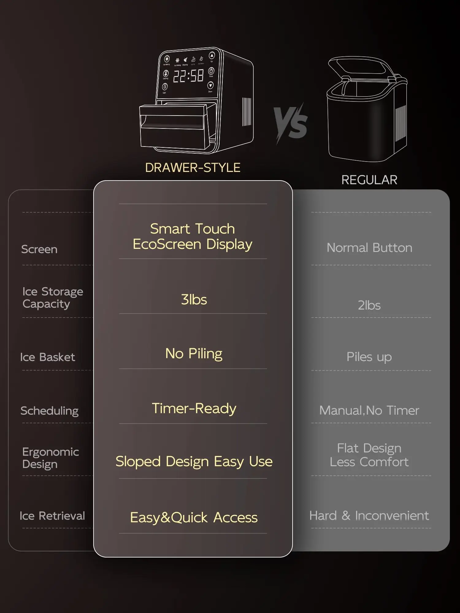 The pull-out design allows you to fill the basket without shifting ice, preventing buildup. This ensures smooth, hassle-free use. You can make the most of your space, scoop ice easily, and keep it tidy. Enjoy a continuous supply of up to 33 lbs per day.