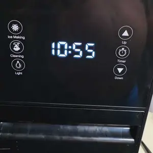 Plan ahead with up to 24-hour ice scheduling. Set your ice-making schedule with a single tap. The built-in self-cleaning function ensures consistently clean ice. Note: No clock timer is included. Keep your countertop clean while scooping ice with the drip tray.