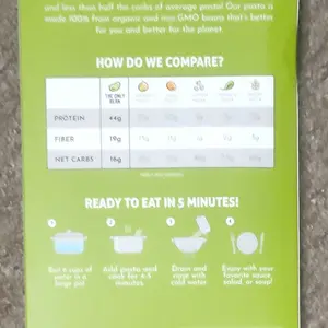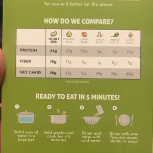 A great pasta alternative! The taste and texture have a bit of a learning curve, but I recommend using a strong sauce to help cover up the earthy taste. Overall, a great way to get fiber and protein compared to other store-brand pastas.