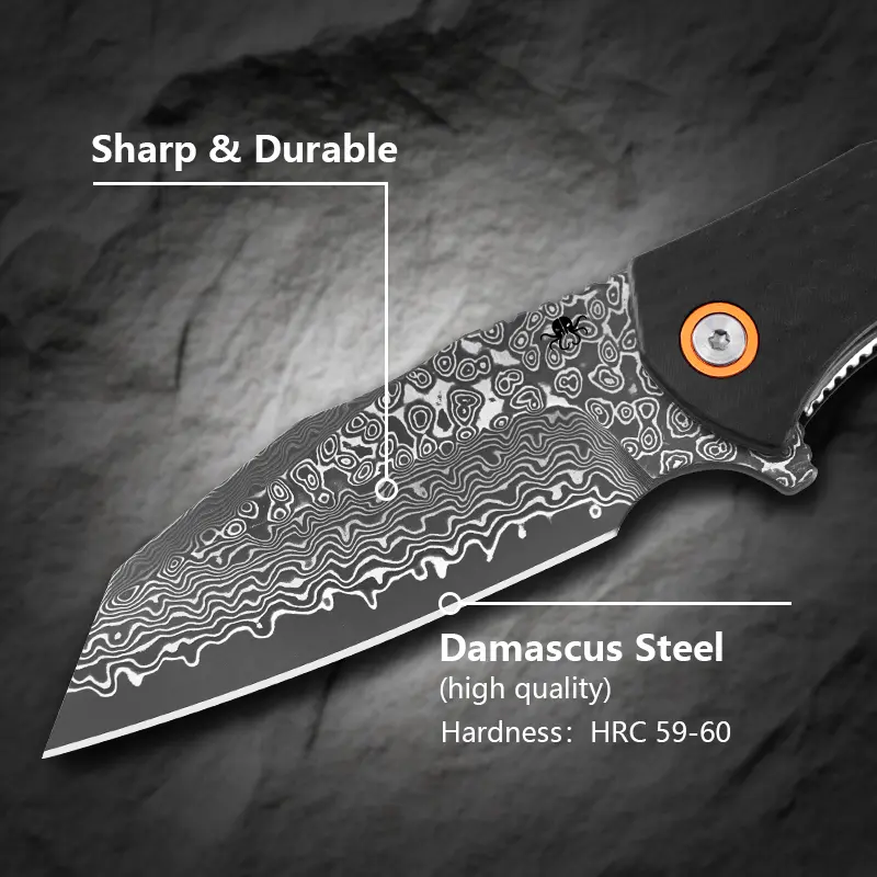 This thing is SWEET! Damascus appears to be legit (texture to it, pattern is consistent when angle changes), and it’s very sharp. My coworker who’s been into knives for a while (also an ex EMT/firefighter who helped me care for my thumb after chonking it with my spyderco; hence the glove tip in the videos/photos) really liked it. Extremely sharp out of the box, and immediately made its way into my daily edc rotation at work.