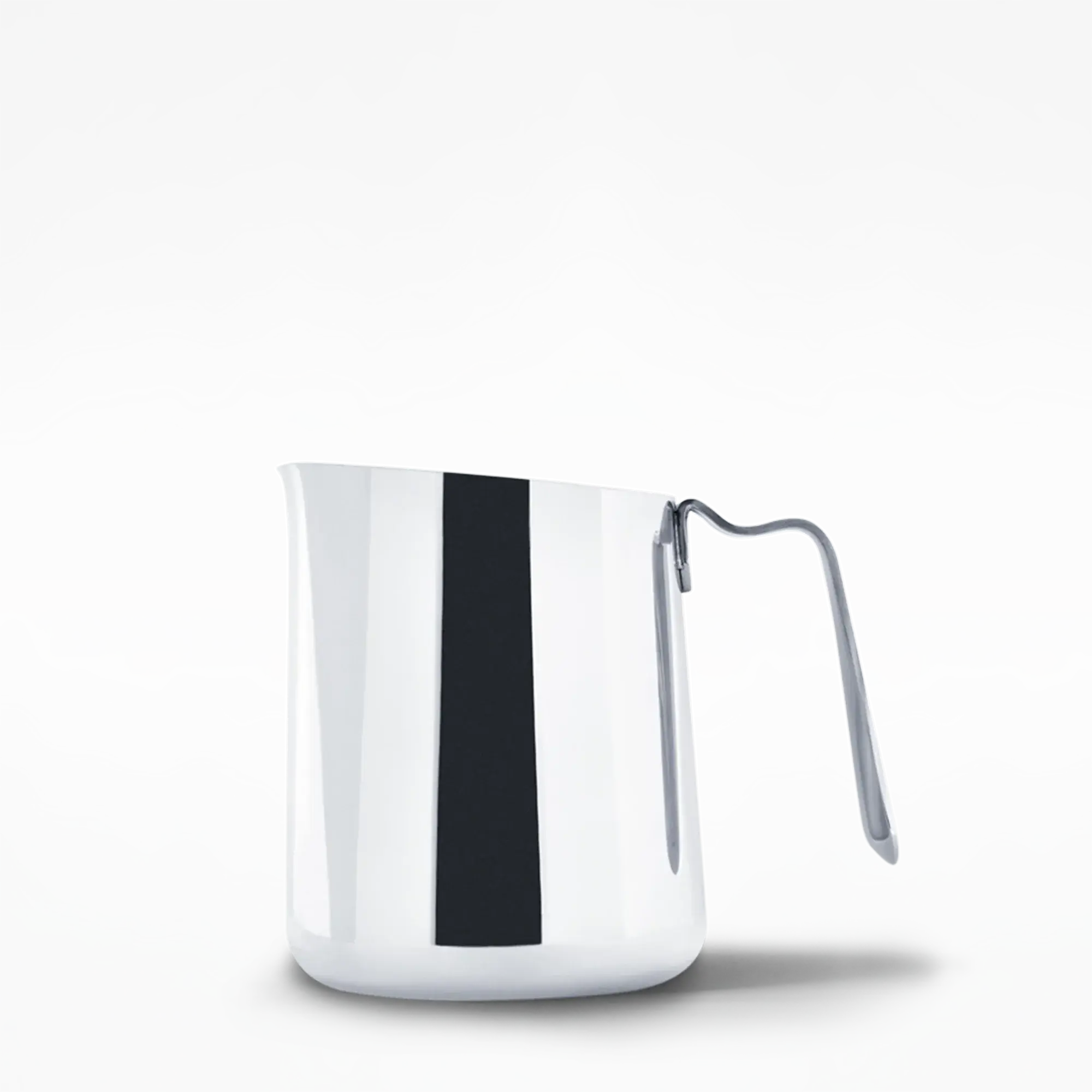 The Eddy Steaming Pitcher offers a wonderful sense of balance throughout the pour. The weight, balance and engineering of the spout make for a great latte art pitcher. The handle is angled and milled for a comfortable hold.