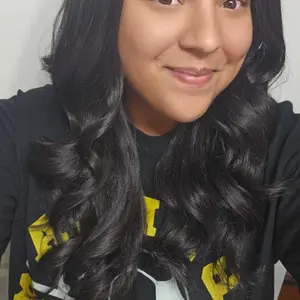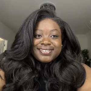 Beautiful hair! Very soft and bouncy! Love the texture! The density is pretty thick!