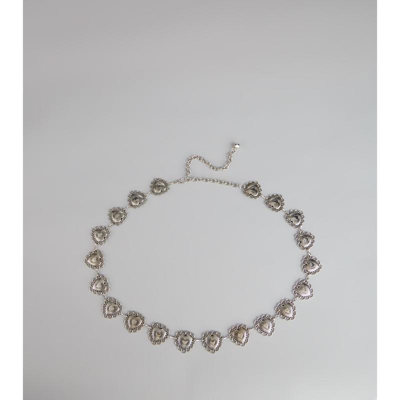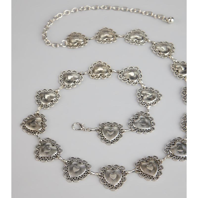 For the girls who love a little edge with their charm. This heart chain belt brings vintage flair with a cool-girl twist. Style it low on your hips or cinched at the waist.
