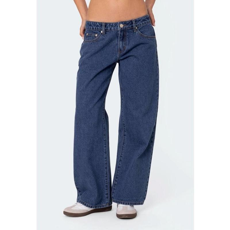 5. EDIKTED Petite Raelynn Washed Low Rise Jeans - 100% Cotton Loose Fit Summer Denim for Comfort and Style