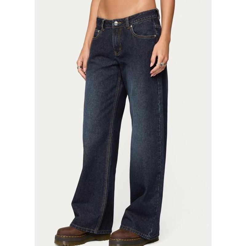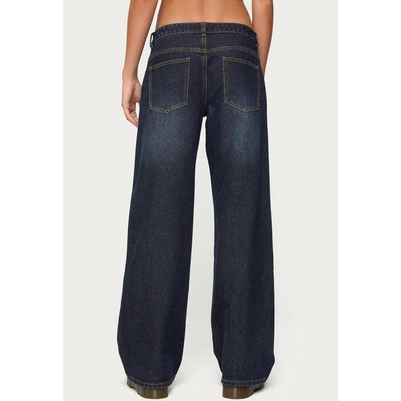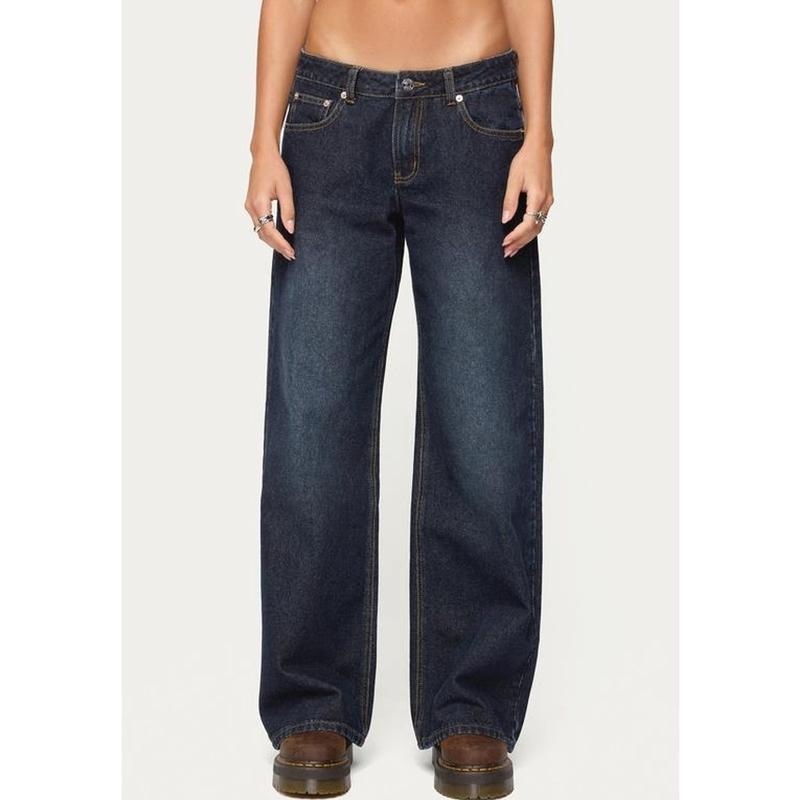 The Raelynn Washed Low Rise Baggy Jeans are a stylish choice for your wardrobe. These jeans feature a low-rise waist and a baggy fit, offering comfort and style. The washed rigid denim fabric adds a unique touch. Made from 100% cotton, these jeans are perfect for everyday wear. The model wears a size S, with an inseam of 31.5 inches. The model is 5'8 tall.