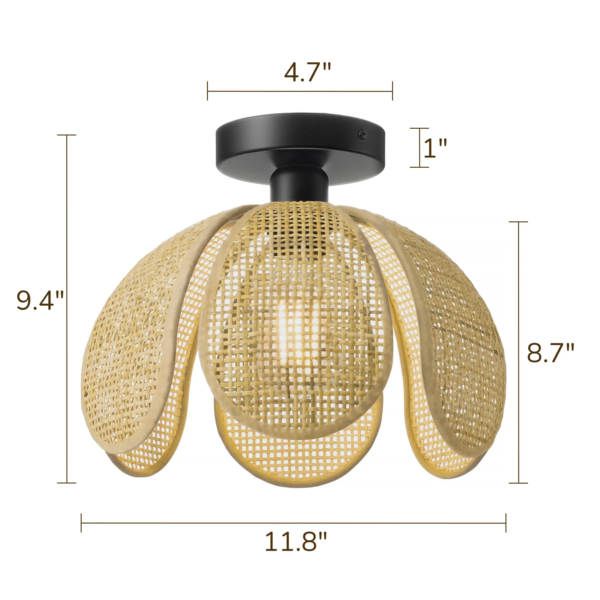 ✨ Six-Leaf Petal Rattan Ceiling Light brings a cozy blend of nature and modernity. Crafted with natural rattan shades, this single head (D30) light features 6 petal-shaped leaves, pre-assembled for easy setup. The sleek matte black metal base adds a minimalist touch. Perfect for enhancing your home's vibe!