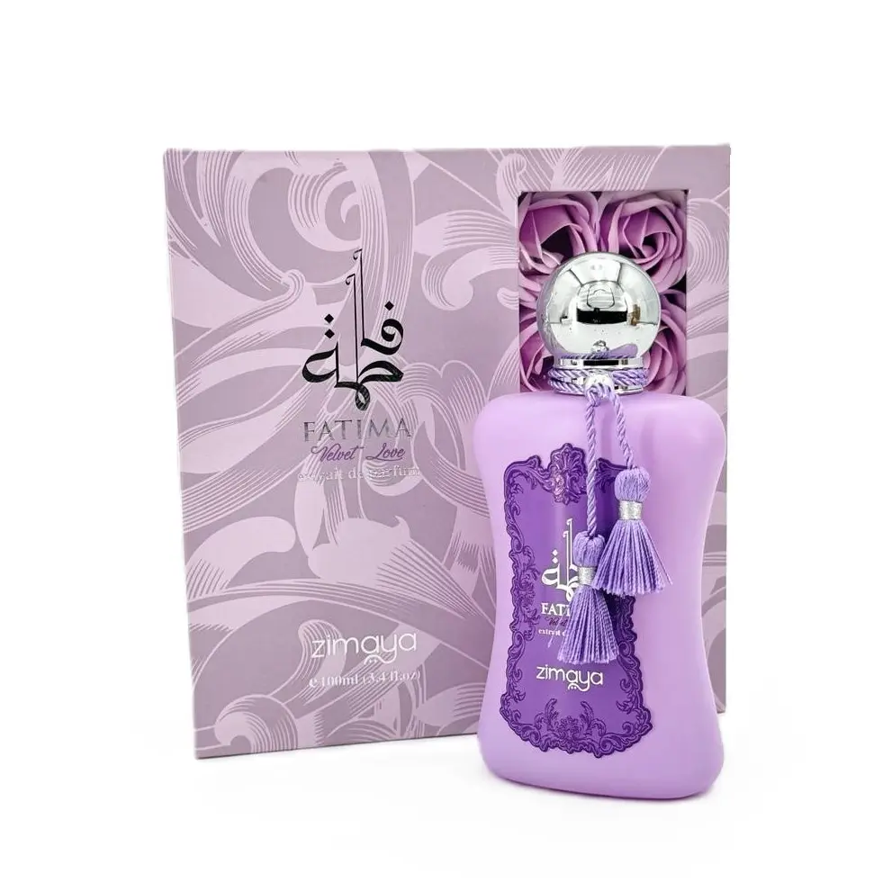 Indulge in the sweet and earthy scent of AFNAN ZIMAYA FATIMA VELVET LOVE 3.4oz EDP perfume spray, a perfect addition to your perfume collection.