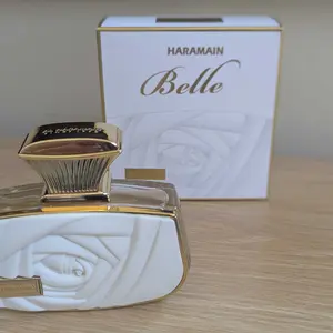 Launched by the design house of Al Haramain. Belle by Al Haramain Perfumes is a Floral Fruity Gourmand fragrance for women. Top notes are Black Currant Blossom, Mandarin Orange and Grapefruit; middle notes are Melon and Apricot.