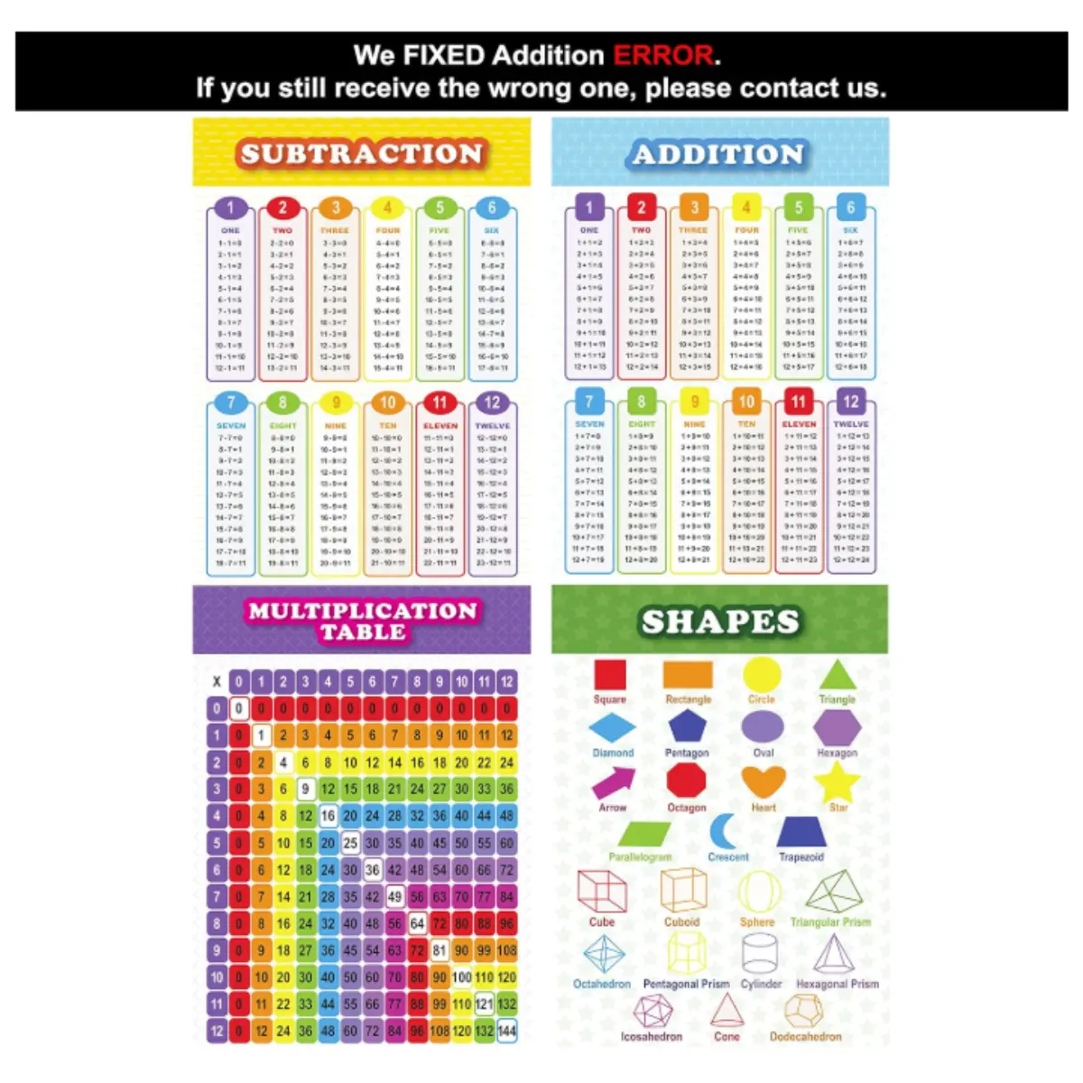 ·Note: We have FIXED ERROR on Addition Poster. Please contact us if the wrong one sent.